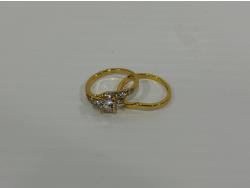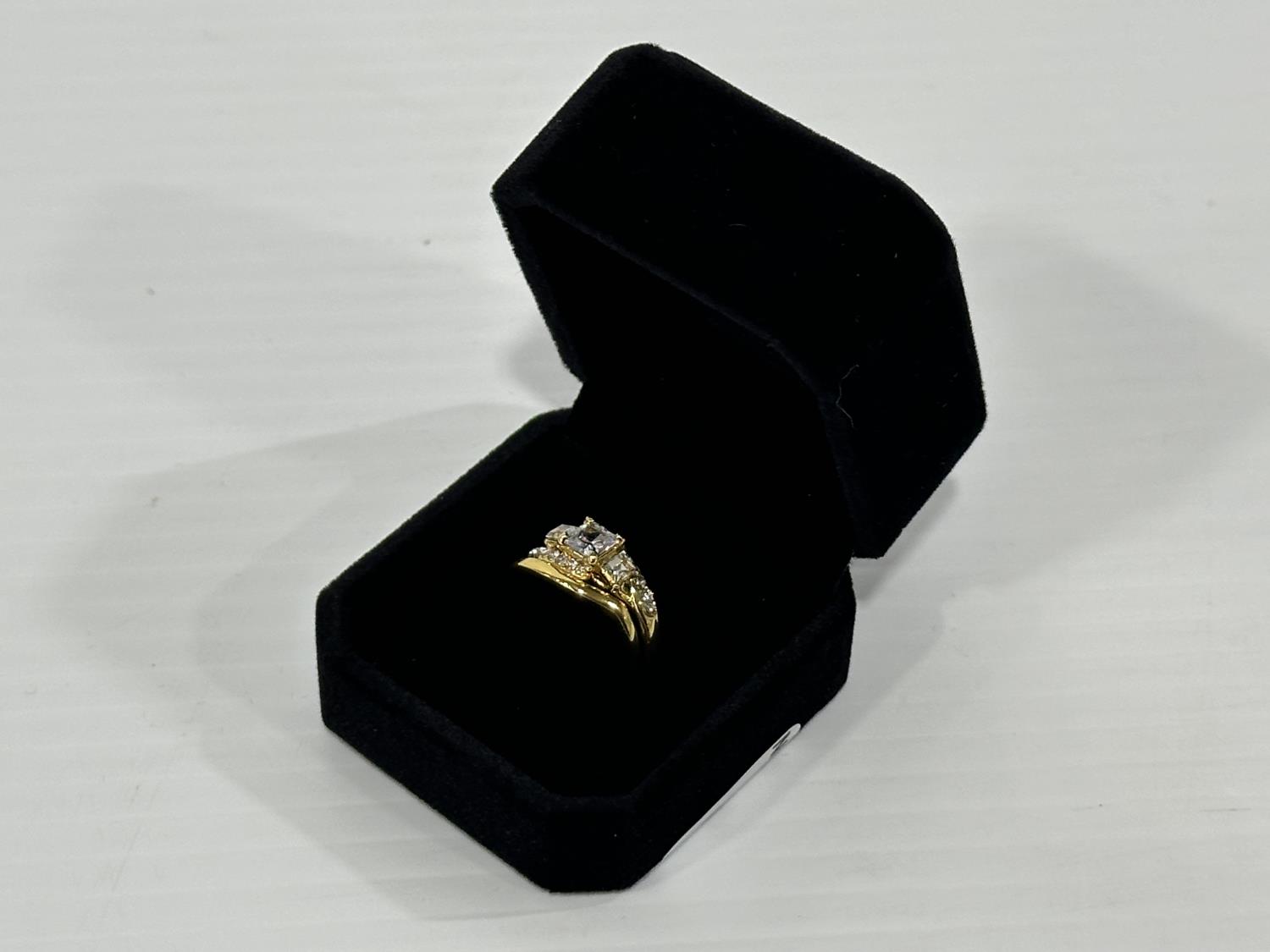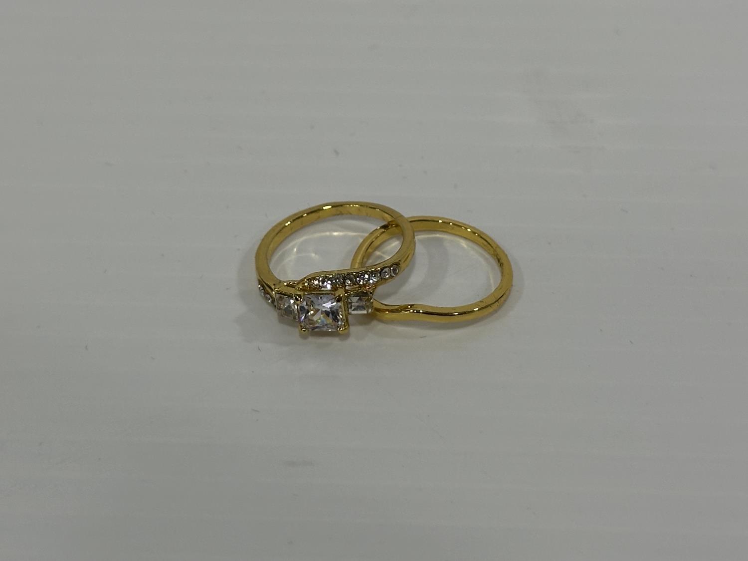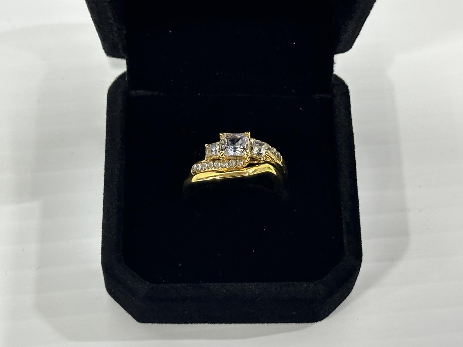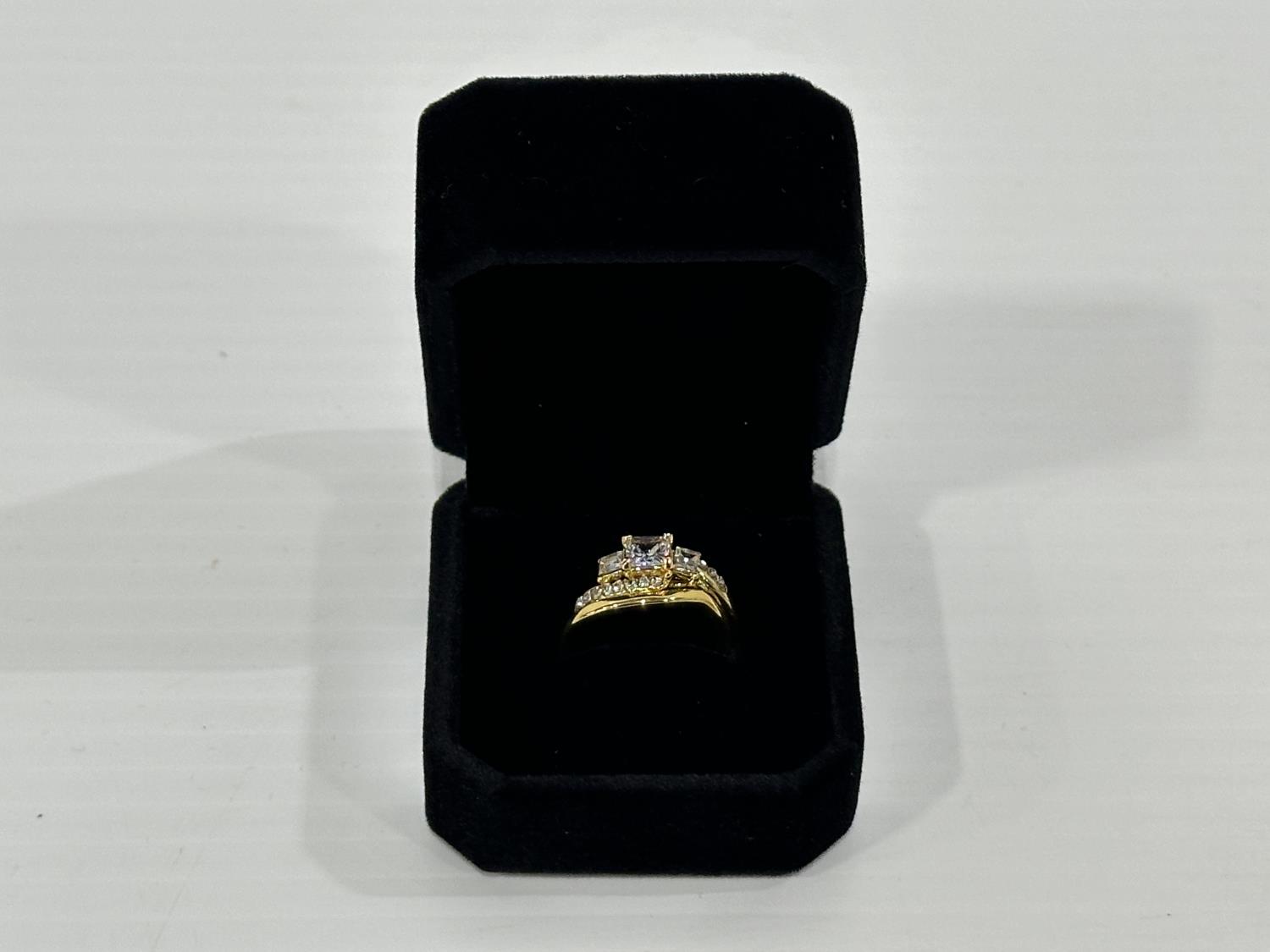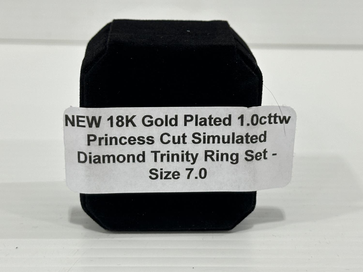 1471 Smartlife 18K Gold Plated 1.0 Cttw Princess Cut Simulated Diamond Trinity Ring Set - Size 7.0 (Unused)