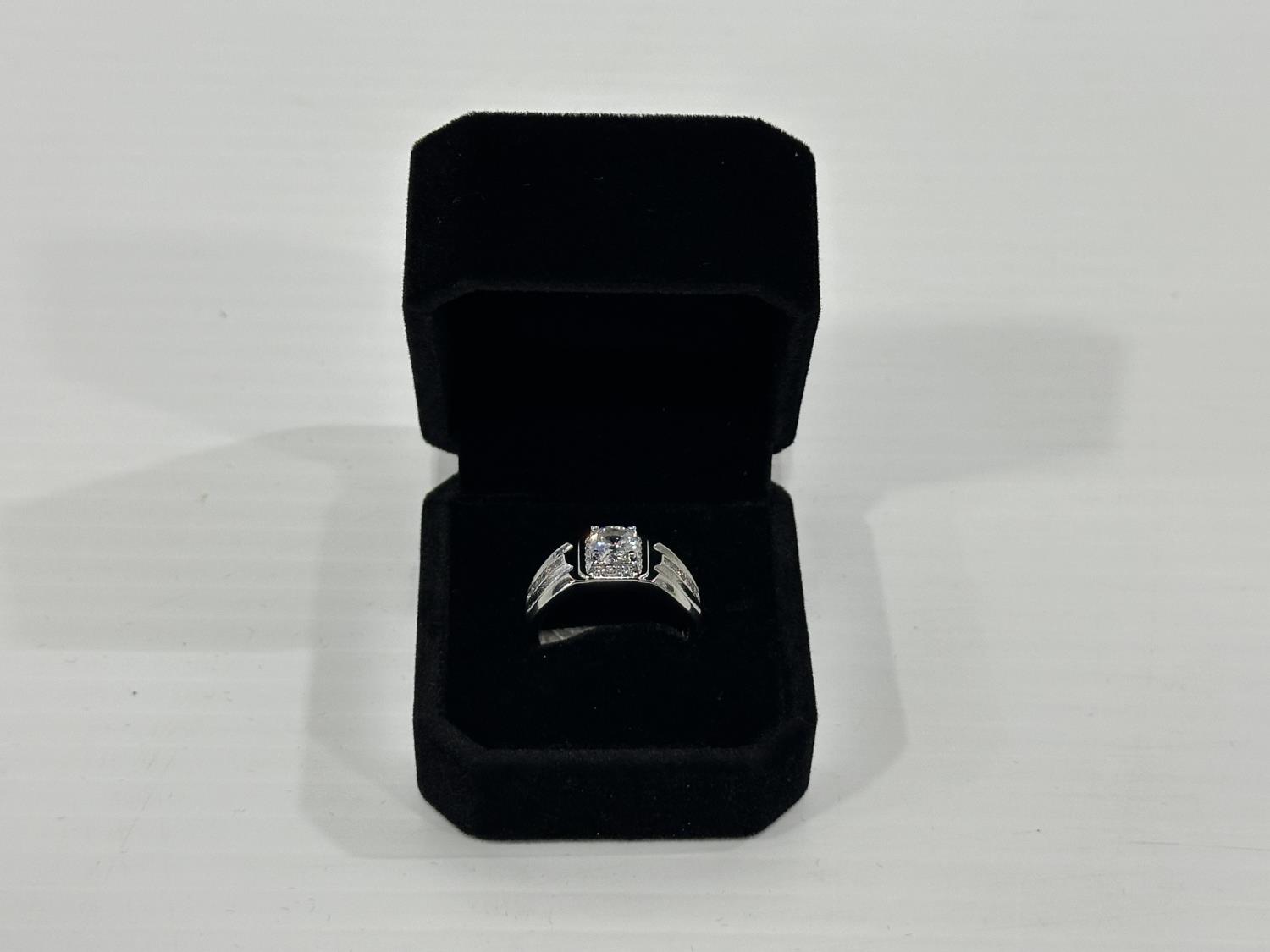 1473 Smartlife Platinum Plated 1.0 Ct Simulated Diamond Men's Ring - Resizeable (Unused)