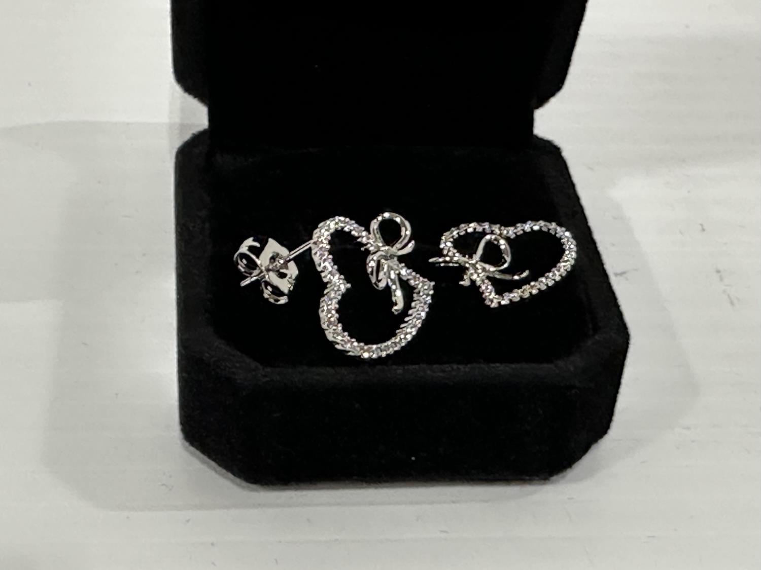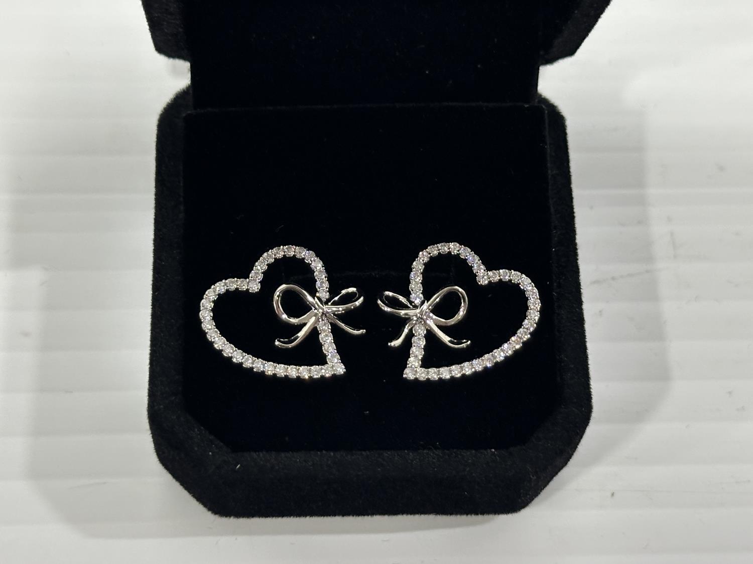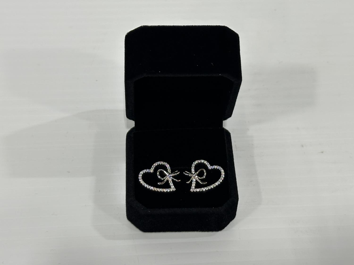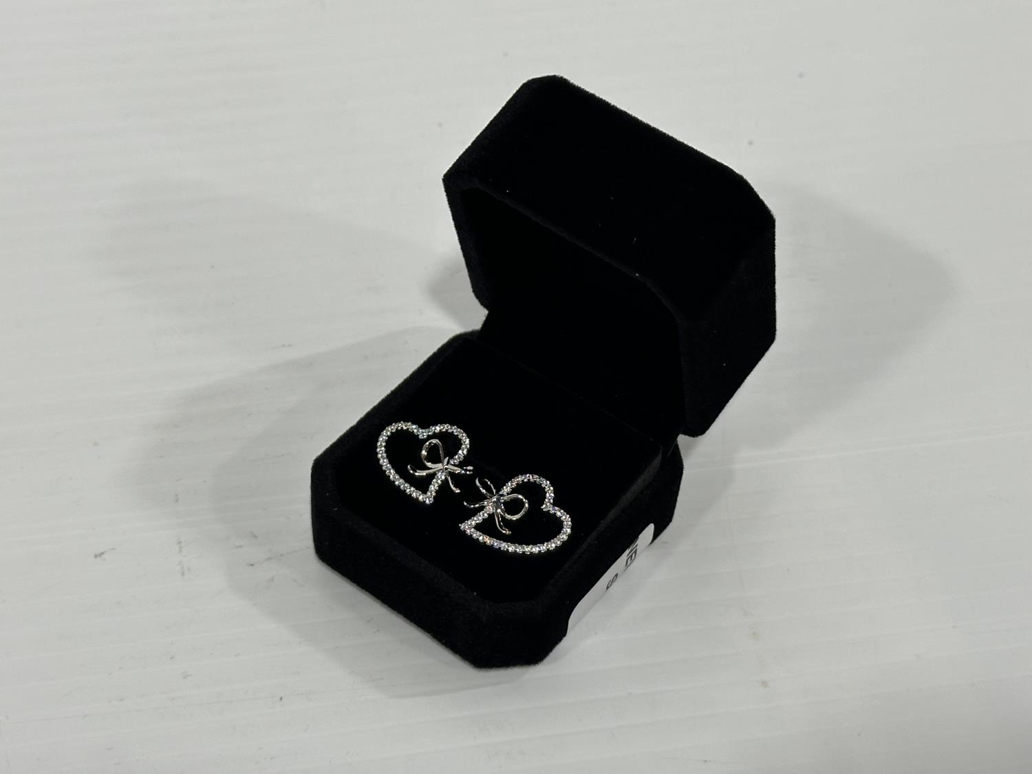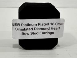 1468 Smartlife Platinum Plated 18.0 mm Simulated Diamond Heart Bow Stud Earrings (Unused)