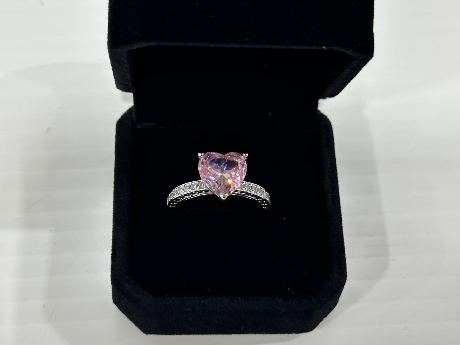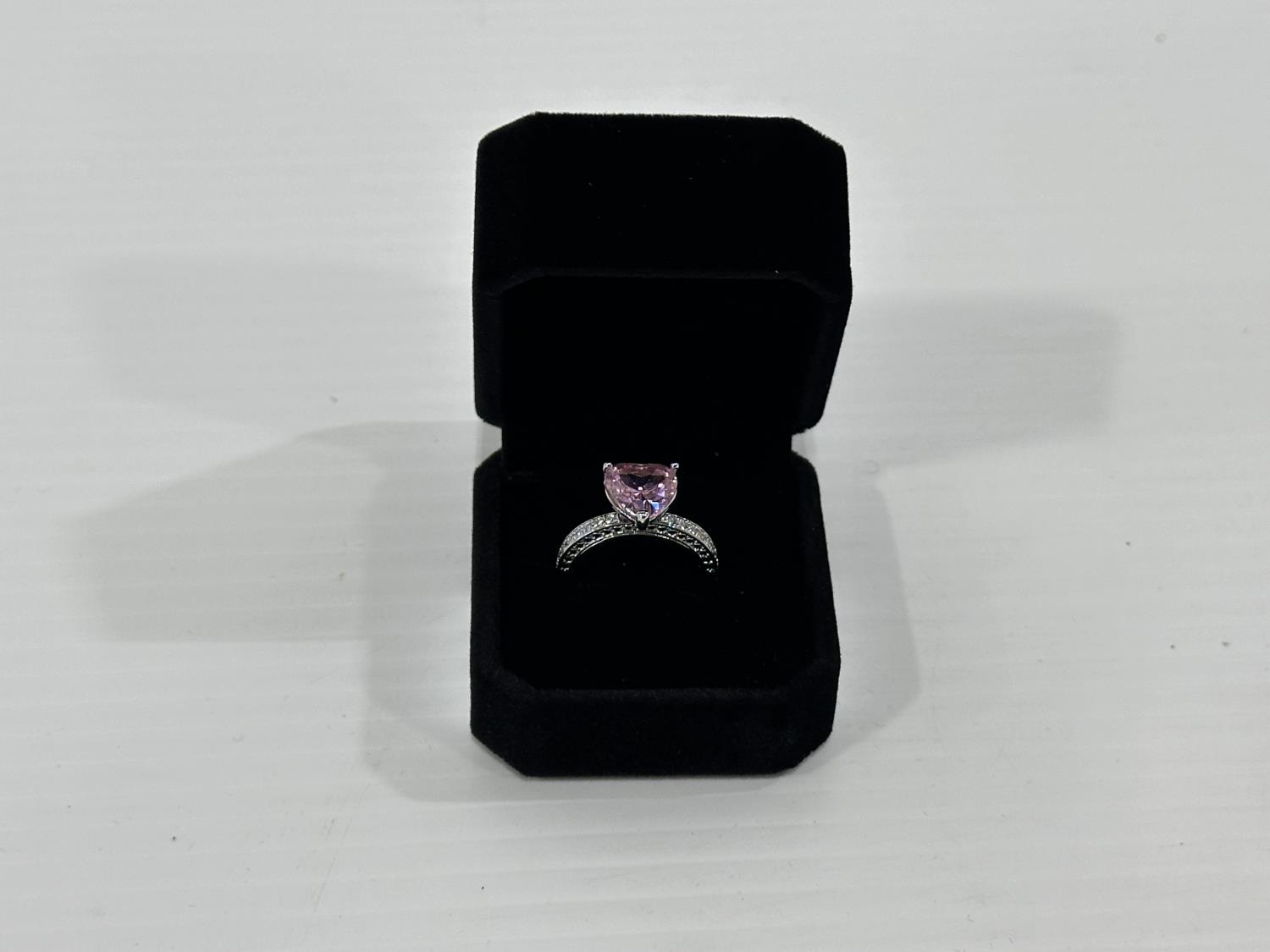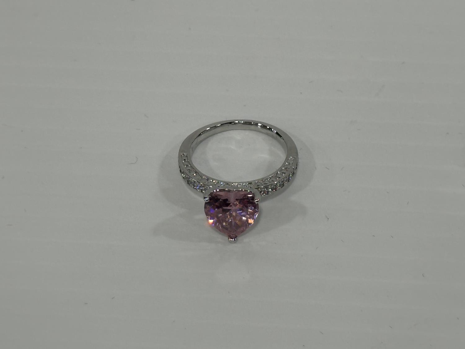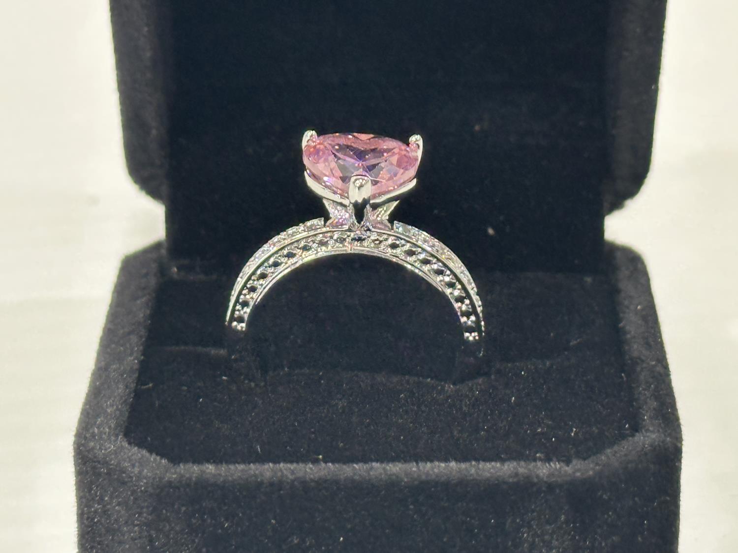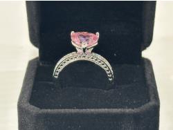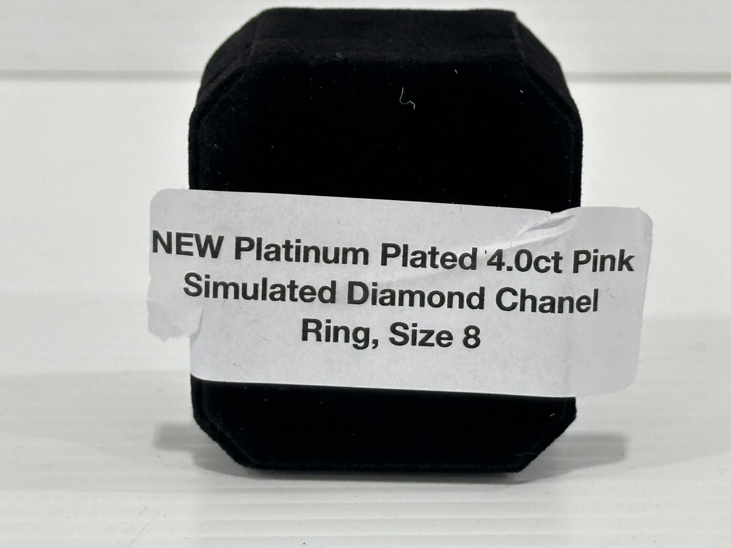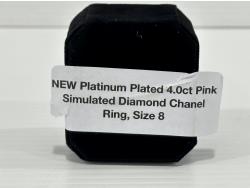 1470 Smartlife Platinum Plated 4.0 Ct Pink Simulated Diamond Chanel Ring - Size 8 (Unused)