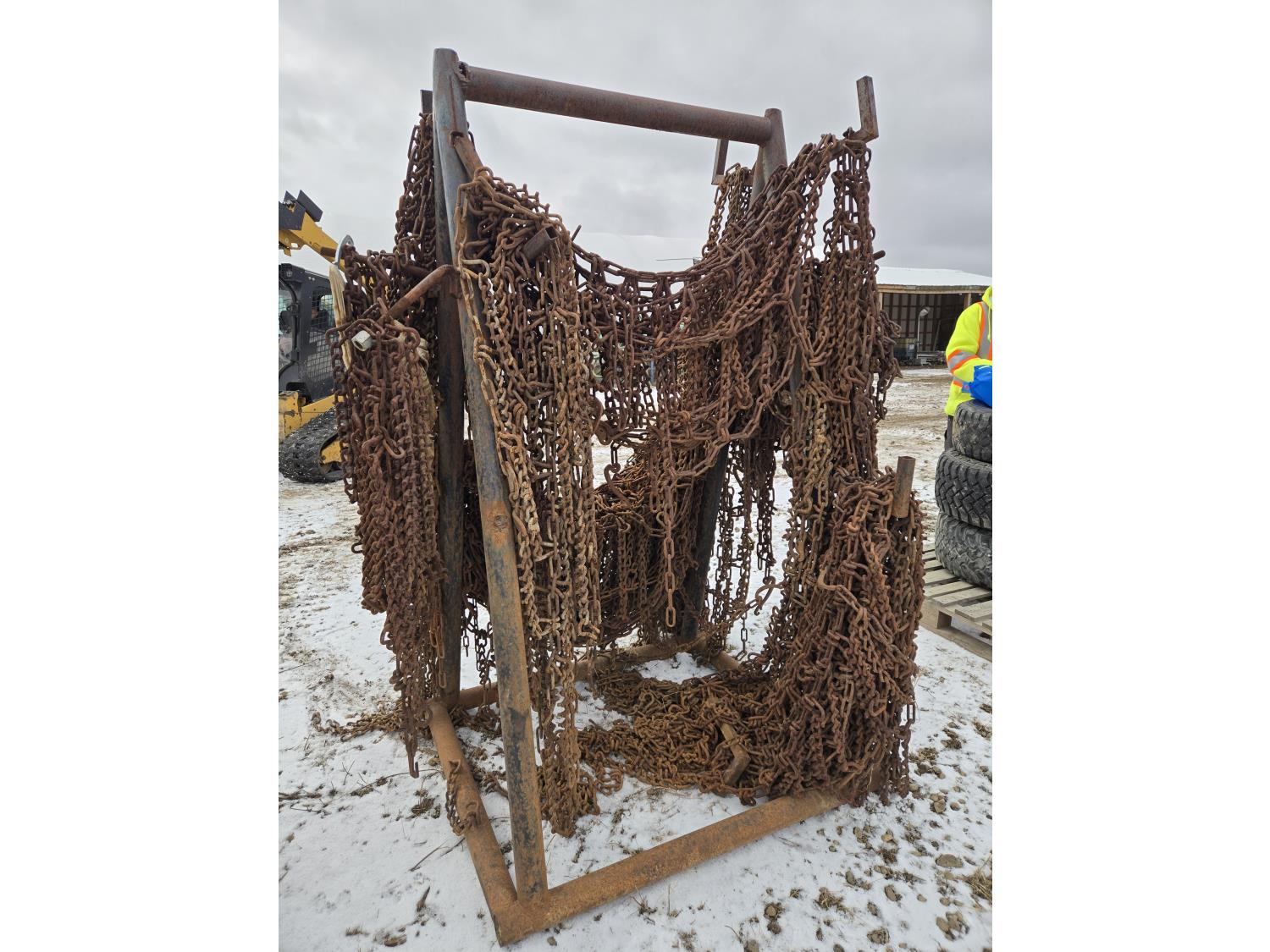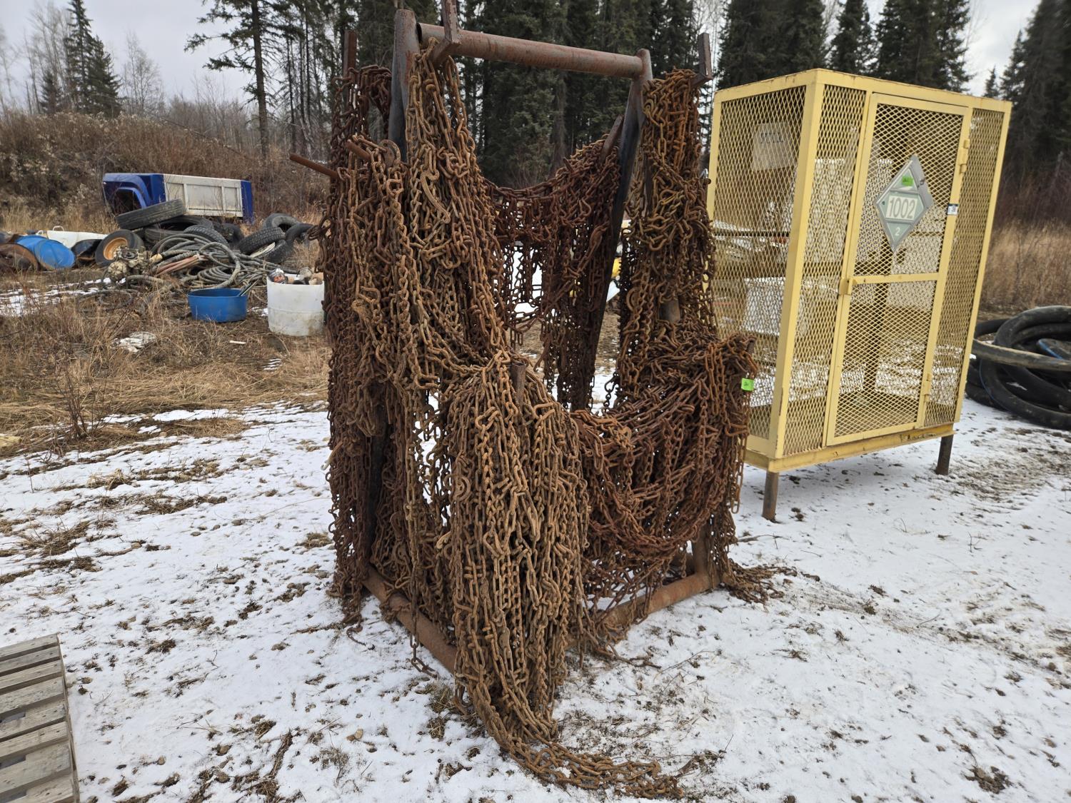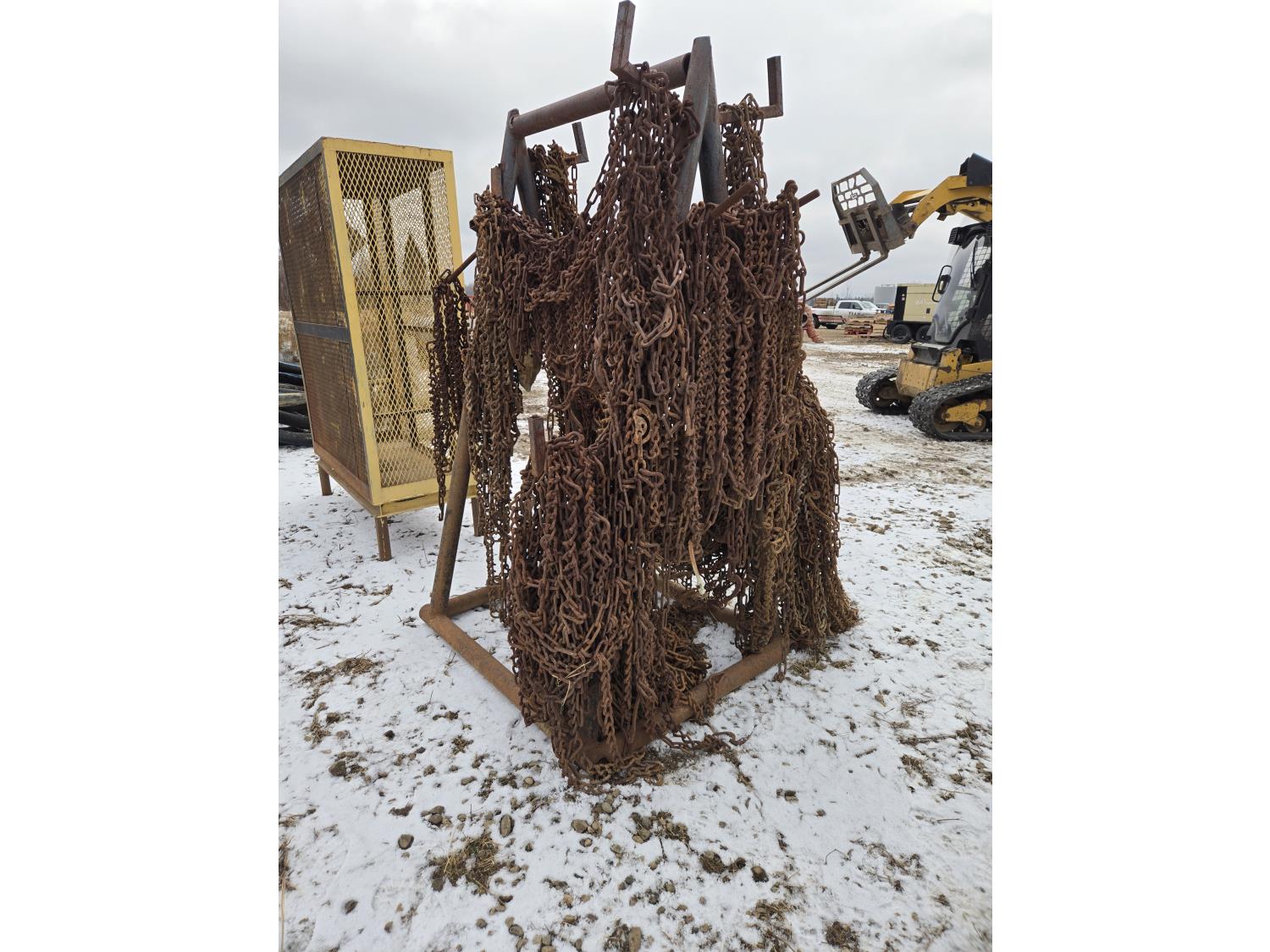 Steel Rack with Assorted Heavy Truck Chains