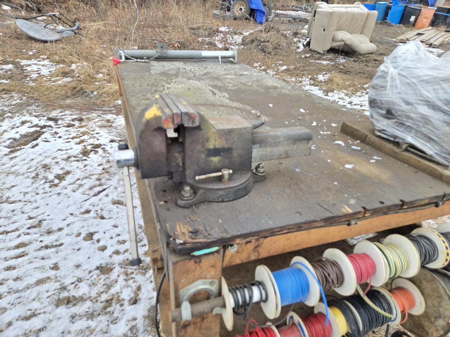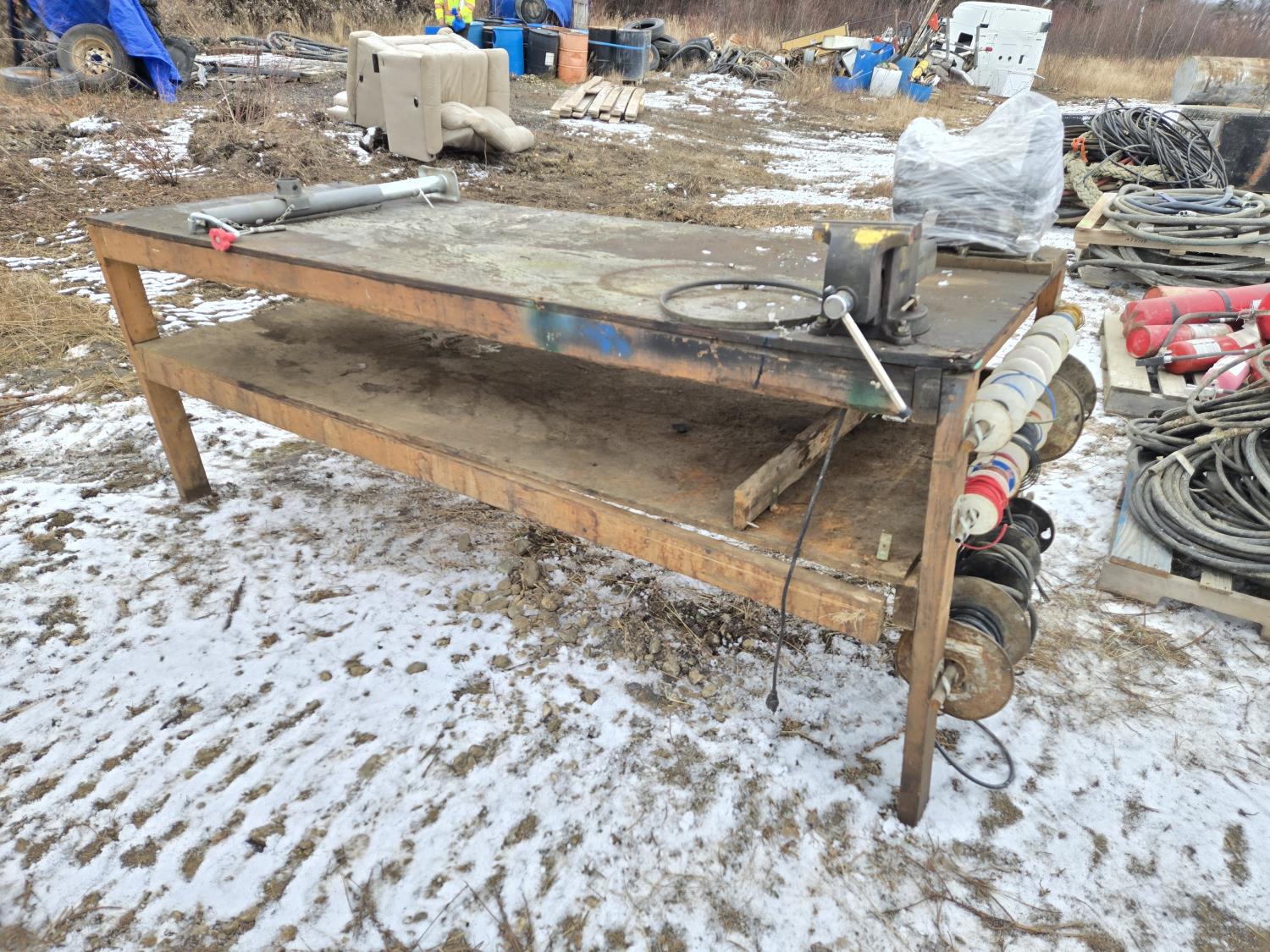 2036 Wooden Work Bench with Vise & Bench Grinder
