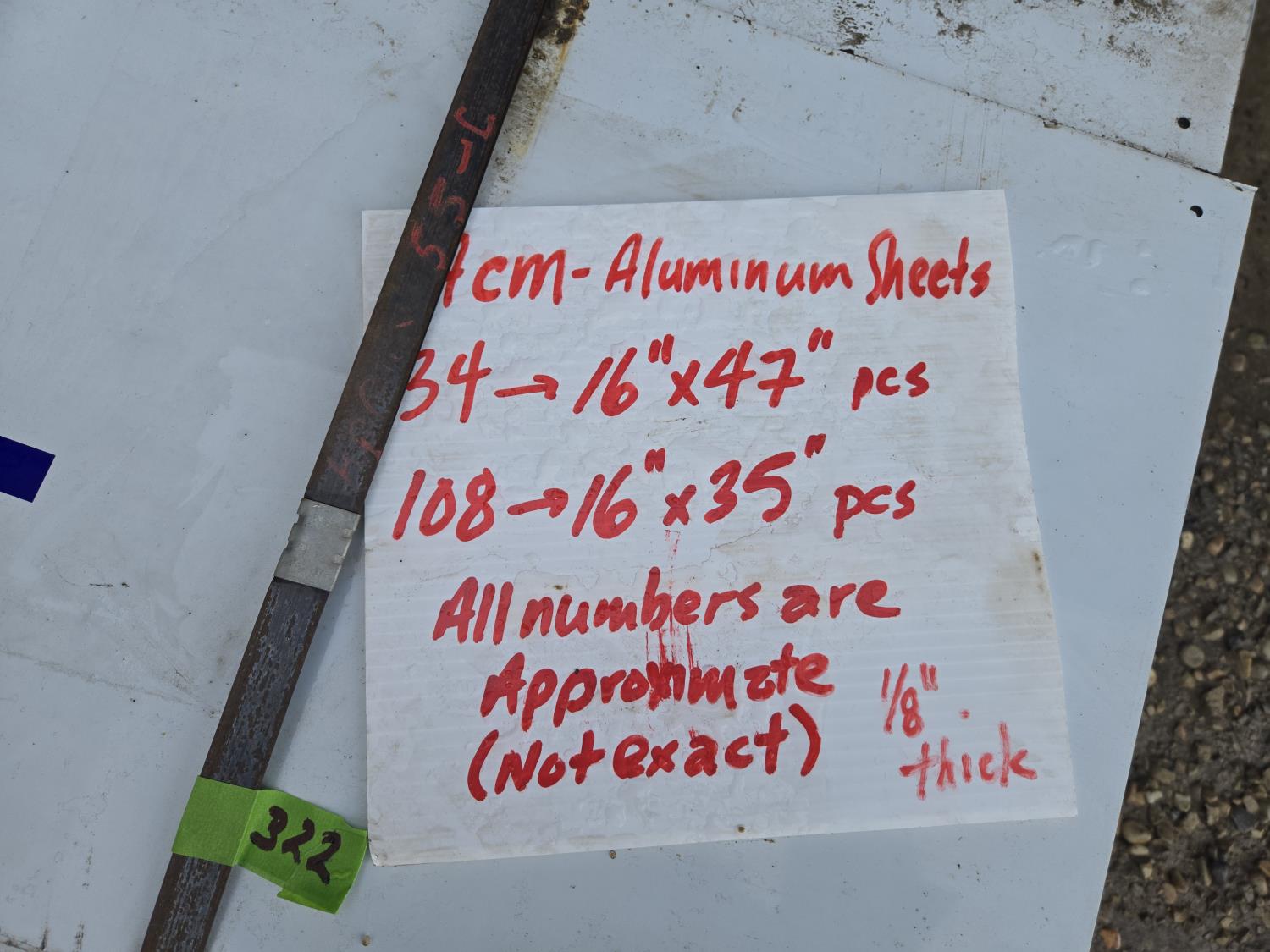 (34) 16 inch X 47 inch, (108) 16 inch X 35 inch, all 1/8 inch thick
