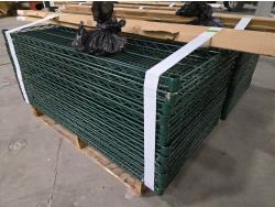 6 shelves per unit, no tools required to assemble, gold posts, green shelves