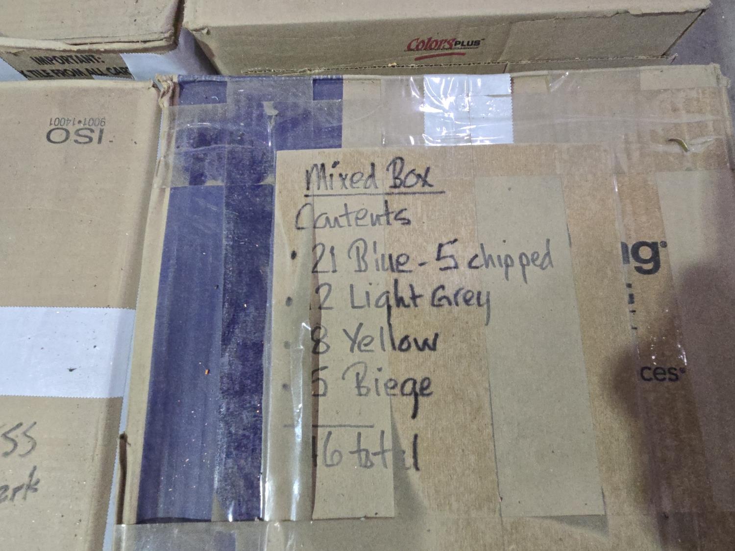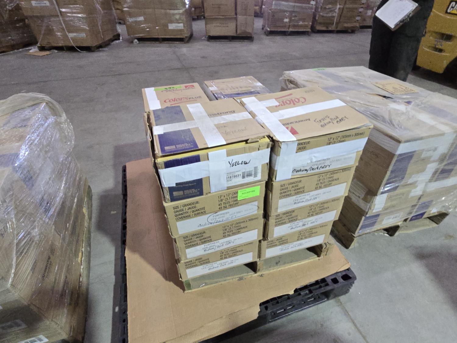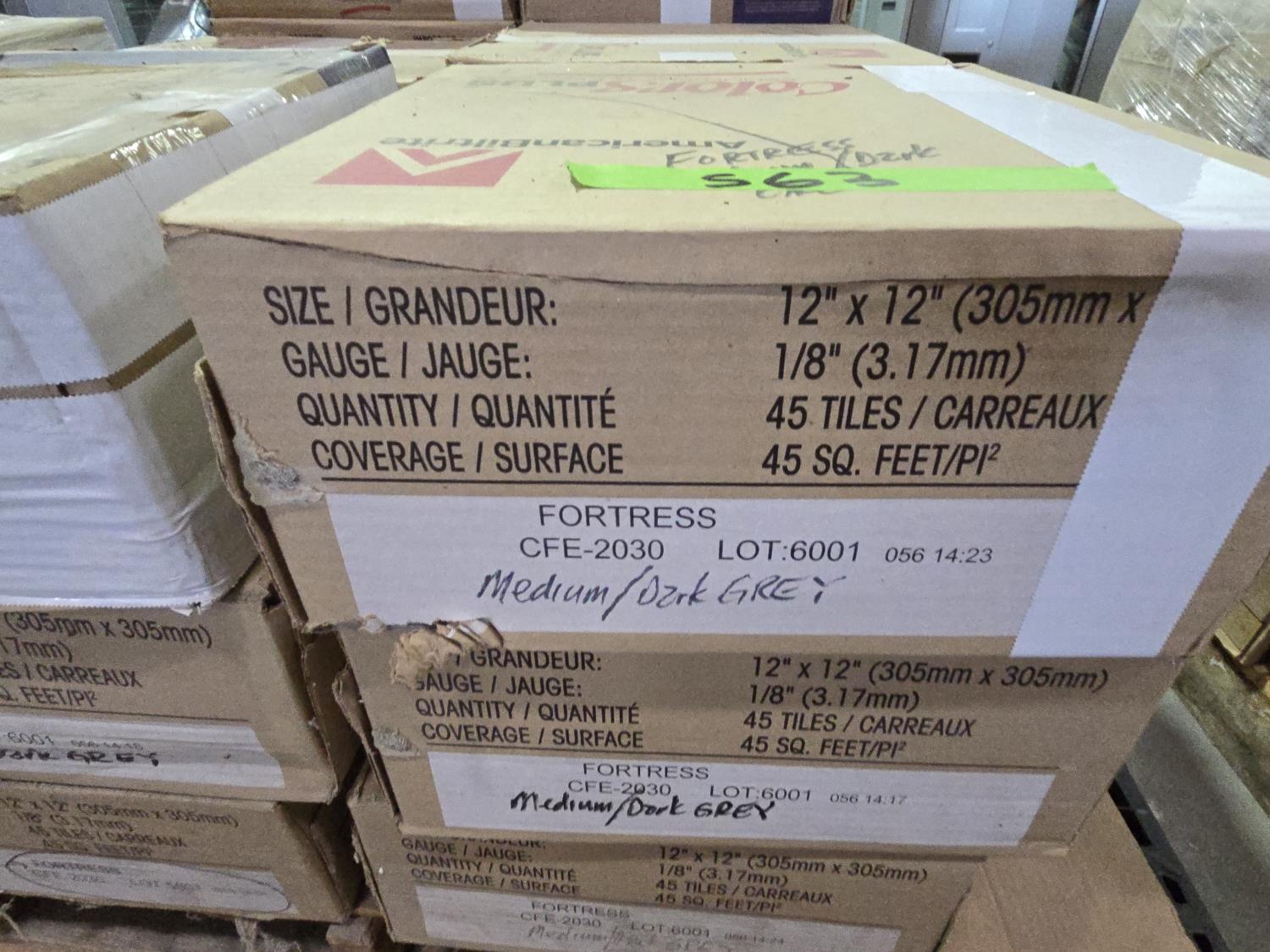 900 sq ft total, (18) boxes of Medium dark gray, (1) yellow, (1) mixed colors