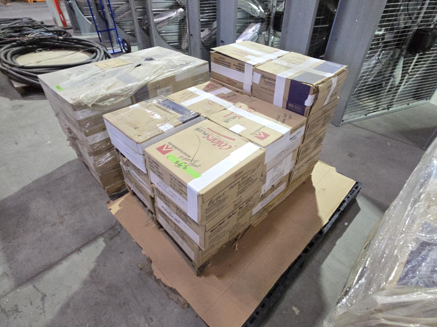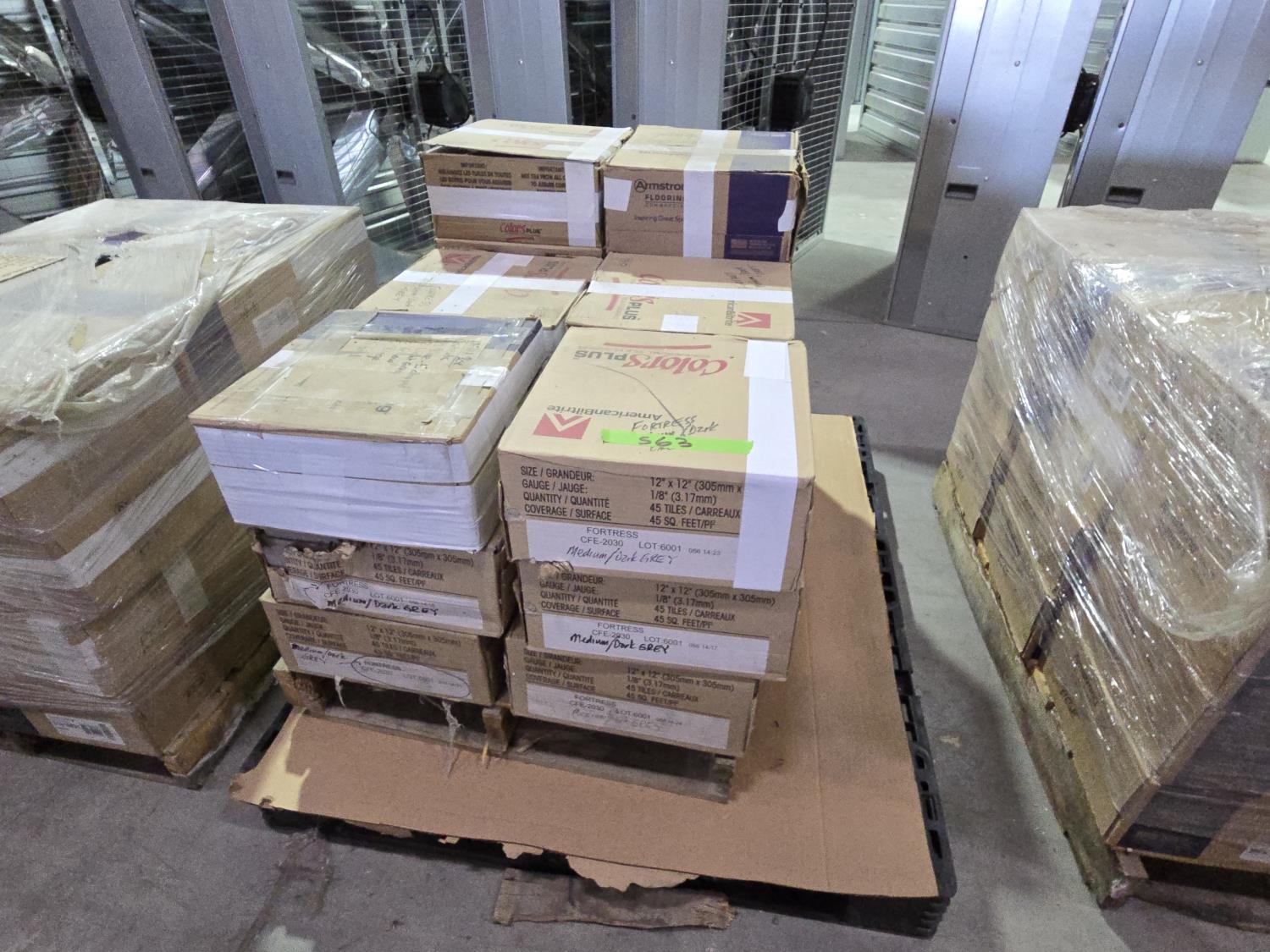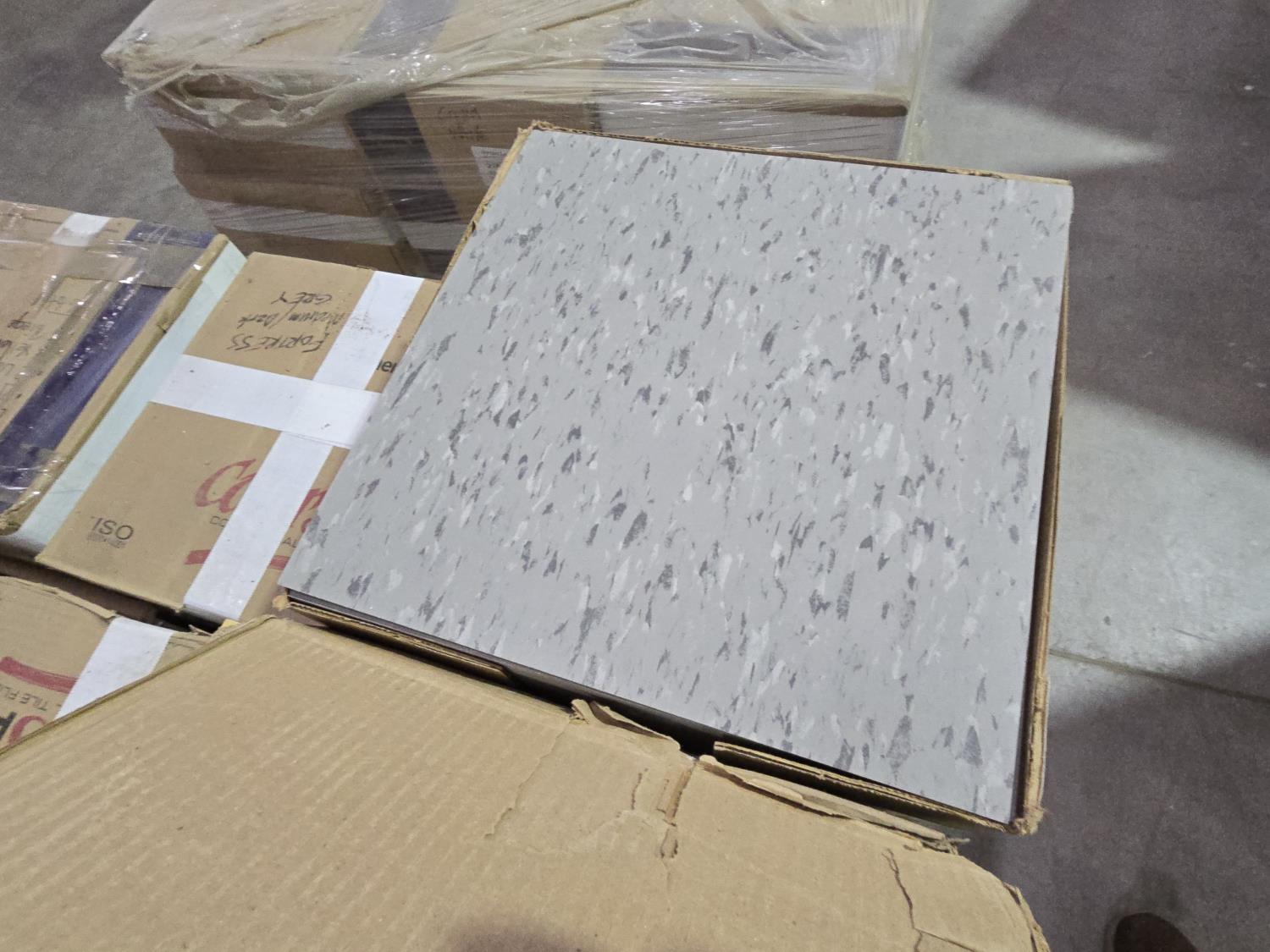 900 sq ft total, (18) boxes of Medium dark gray, (1) yellow, (1) mixed colors