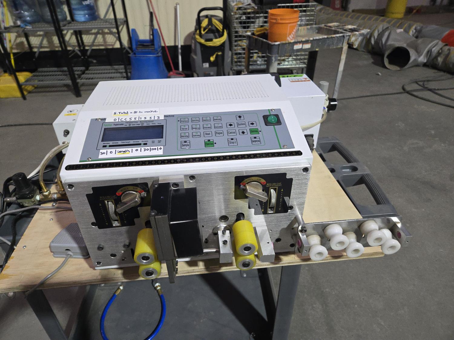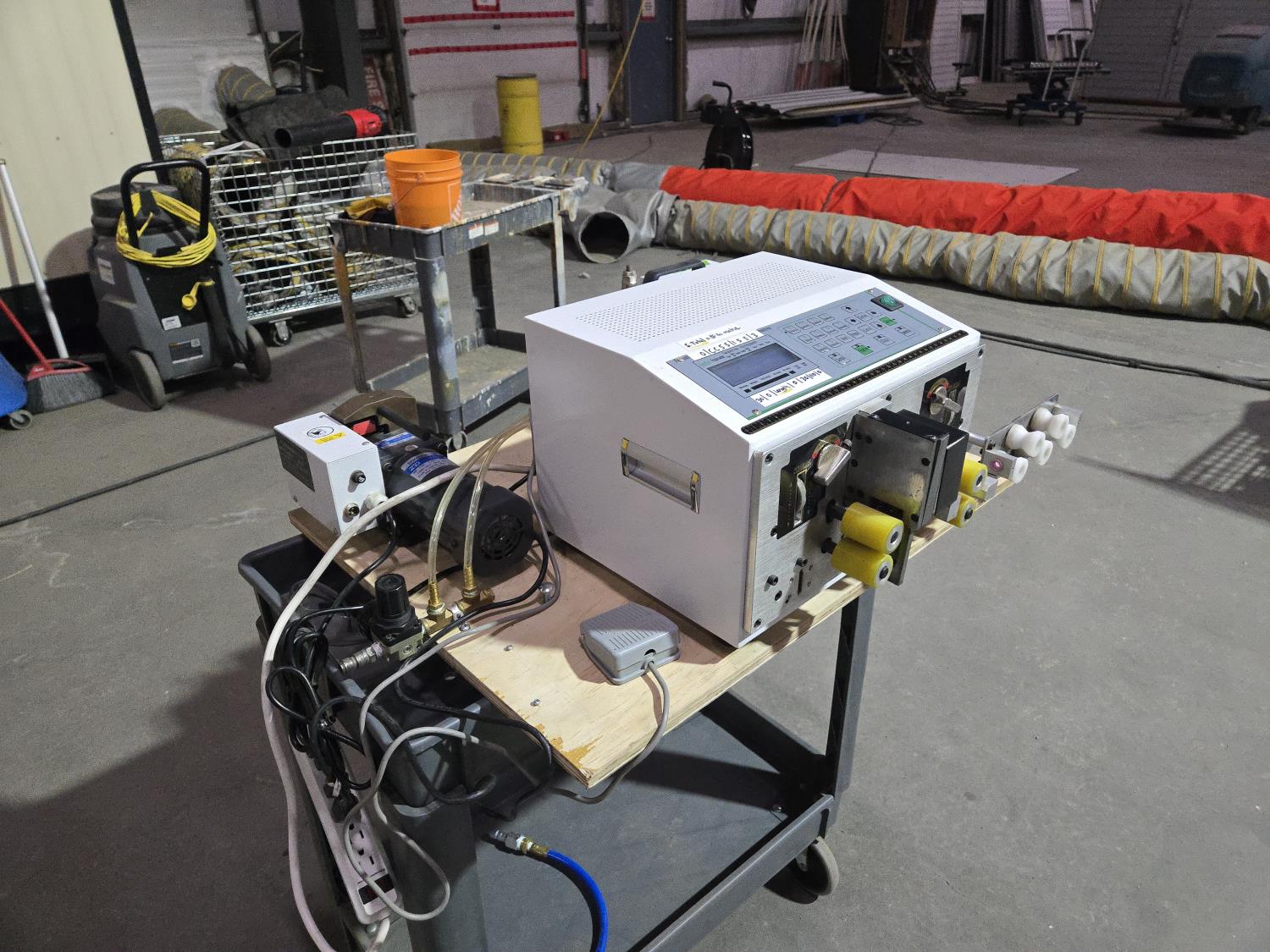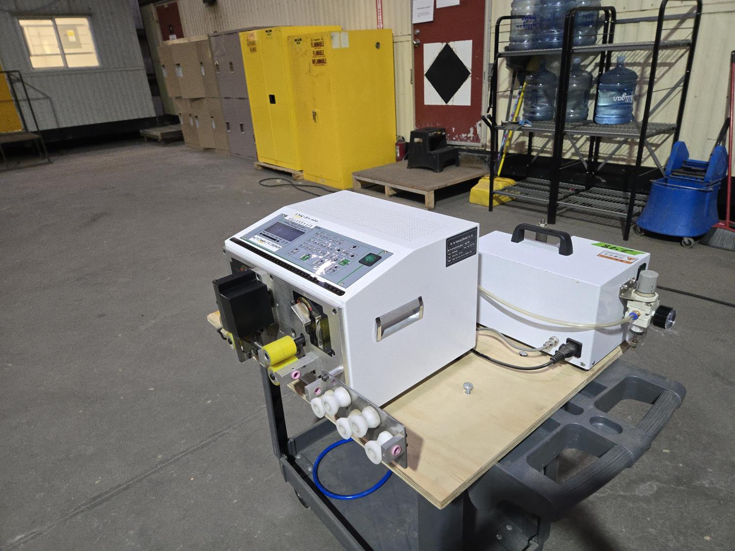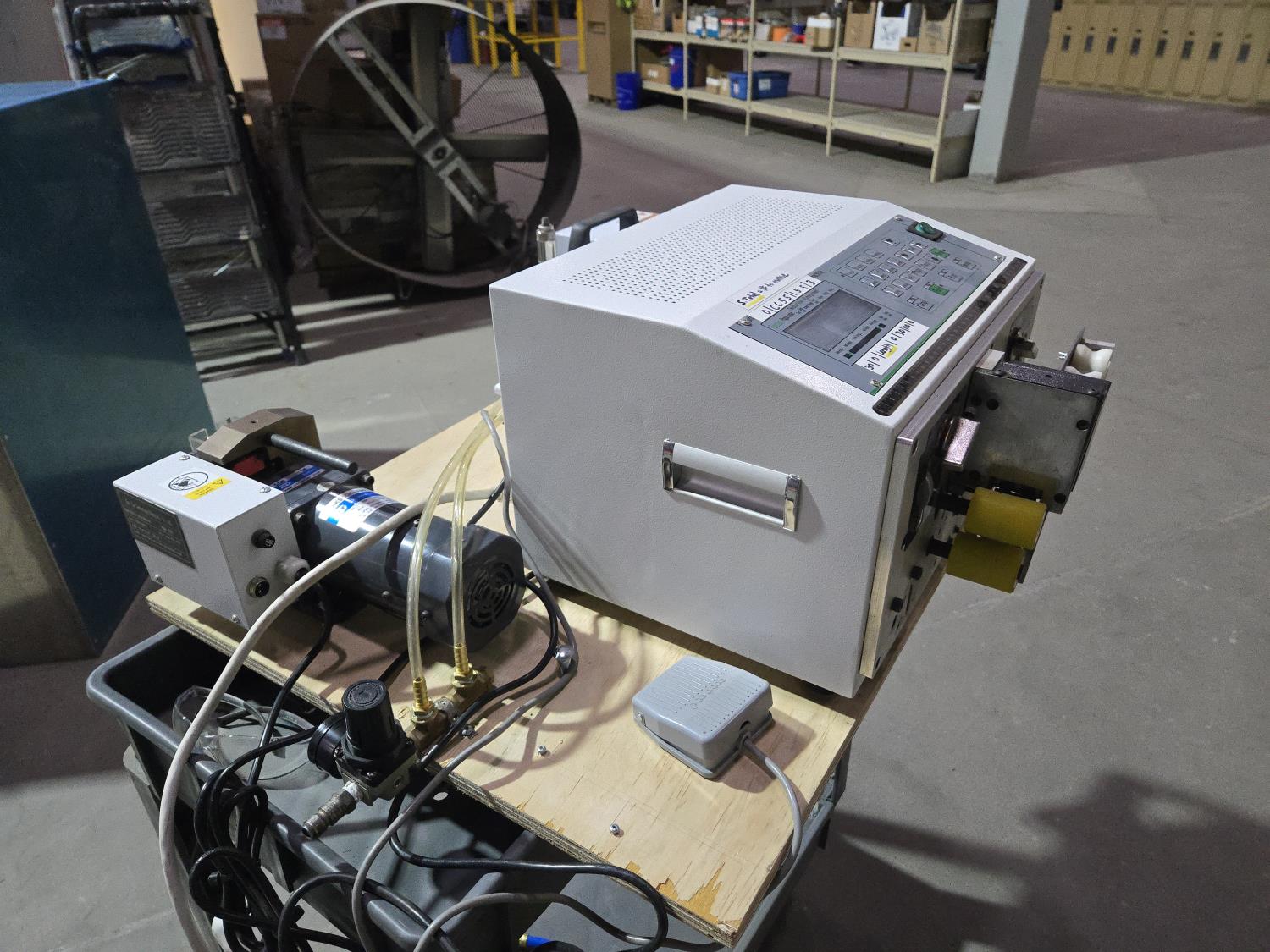 (1) BY43 cable straightener, (1) BY302 cable cutting and stripper, (1) BY45 crimping machine, mounted on plywood base, Processing wire range: 0.1-4.5 mm², SA-209NX2 is a economical full automatic wire cutting stripping and twisting machine for electronic wires, It’s adopted four wheel feeding and English display, very easy to operate, SA-209NX2 can process 2 wire and stripping twisting both end at one time and Stripping length 0-30 mm, It’s Greatly Improved stripping speed and save labor cost.