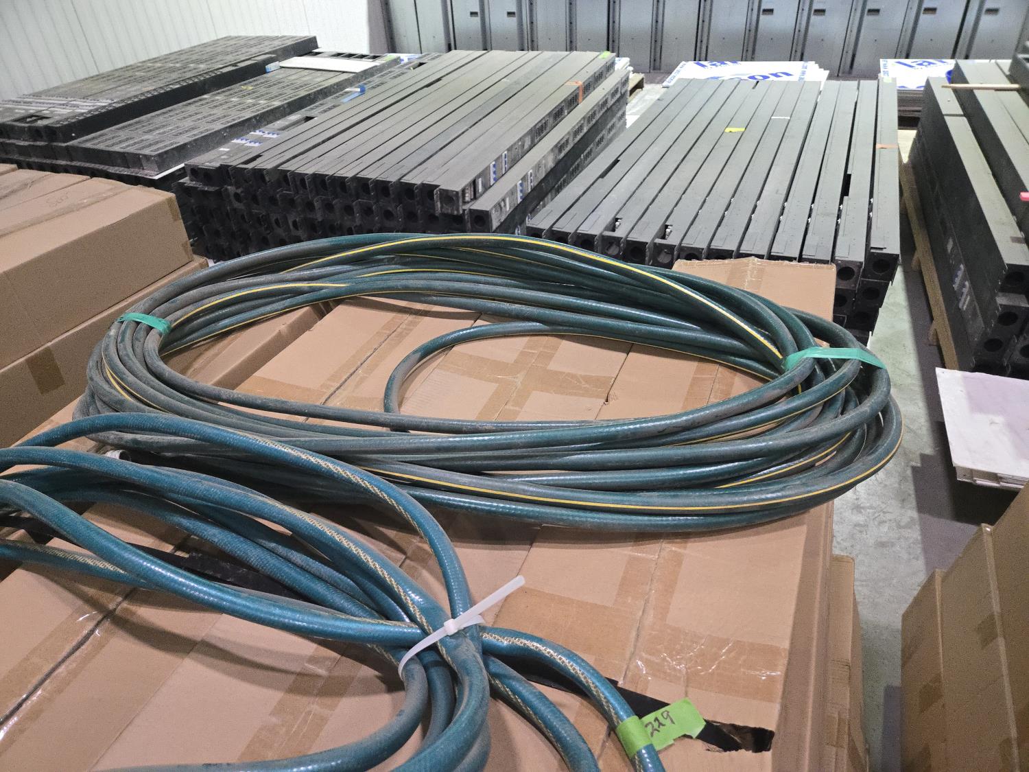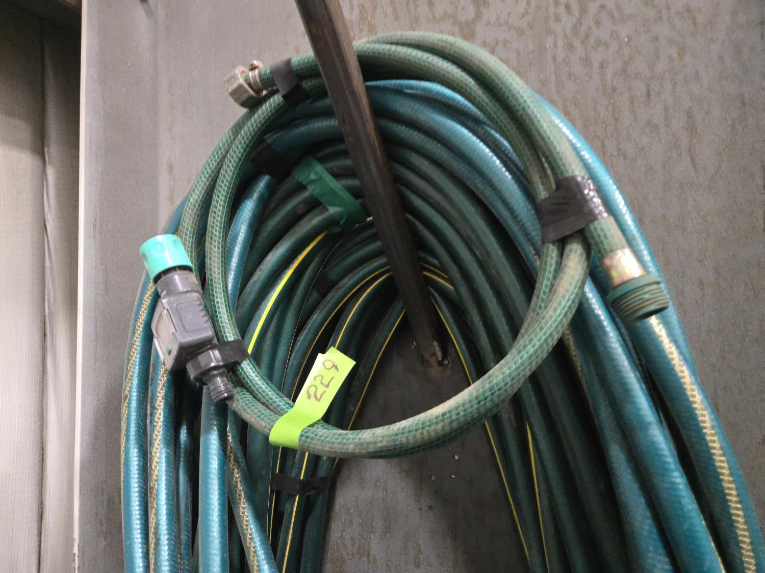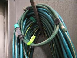 313 (4) 5/8 inch Garden Hoses Various Lengths & (1) Flowmeter