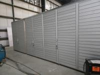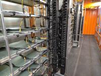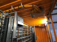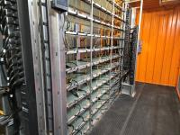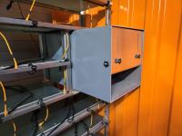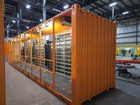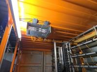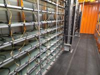 1.2 Mega watt, installed shelving for (360) miner locations, (15) PDU's with (24 ports and C19 outlets, 125 Amp, 3 phase, 240/415 volts, 3P beaker, individual overload protector for each outlet, 125A terminal box and input cable from bottom), (360) C19 to C20 cables, (360) Cat 5E ethernet cables, (8) Cisco 3750 switches, 48 ports, (6) 24 volt DC 12.5 amp motorized louvers, (4) Infinity airlift warm air recirculation fans 100-240 volt AC and 100W max, rubber grip flooring, laptop table, miner blank guards, (5) 204 volt duplex receptacle plugs, (3) 120 volt motion activated overhead LED lights, 9 ft 6 inch high, reinforced to allow stacking, Paint specs: sand blasted prior to painting, Cloverdale A35 Armourshield urethane paint with (2) heavy coats of paint direct to metal 3- 5 mil thick
