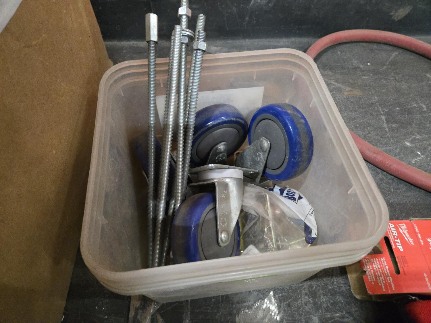 341 Qty of 4 Ft Garden Hose, (4) 4 Inch Caster, Milwaukee Air Tip (Unused)