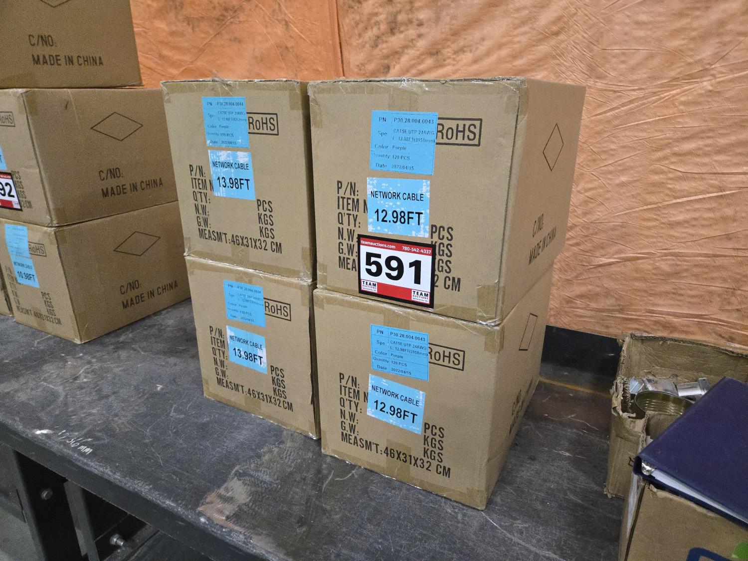 591 Qty of Cat 5E Purple Network Cables (Unused)