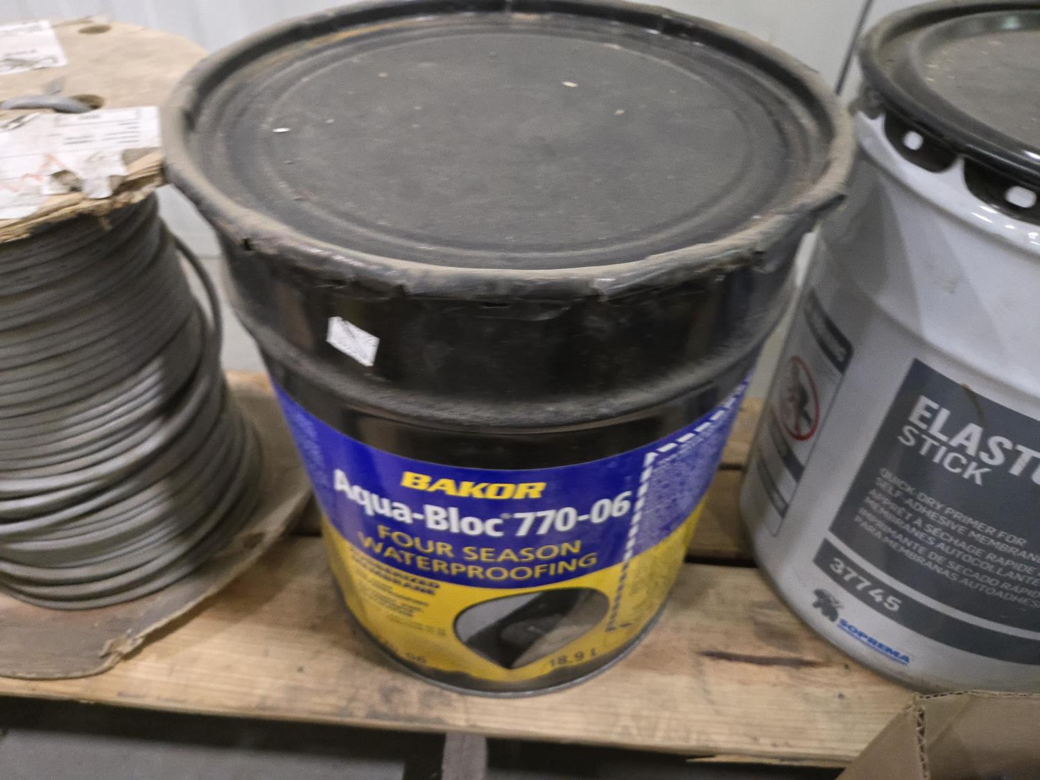 5 gallon Elastocol stick, 18.9 L of Aqua Bloc T10-06, part roll of 8 wire electrical cable
