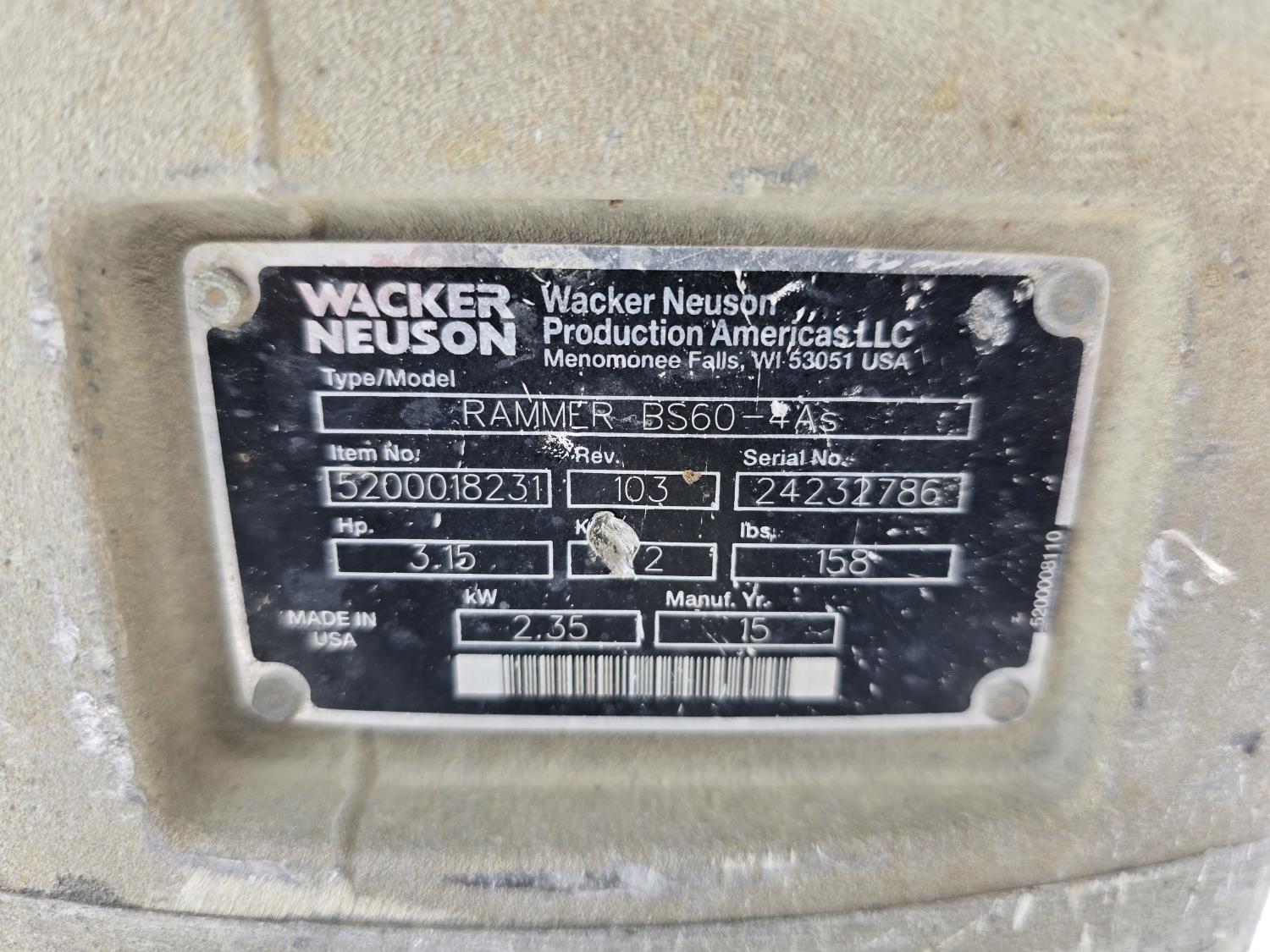 1349 2015 Wacker Neuson BS60 Jumping Jack Tamper