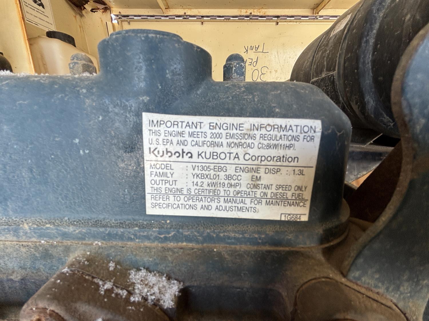 Kubota 1.3L 19 HP 3 cylinder diesel engine, single phase, 120/240 volt, 185/80R13 tires