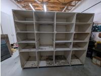96 inch L x 24 inch W x 77 inch T, includes adjustable shelving on backside