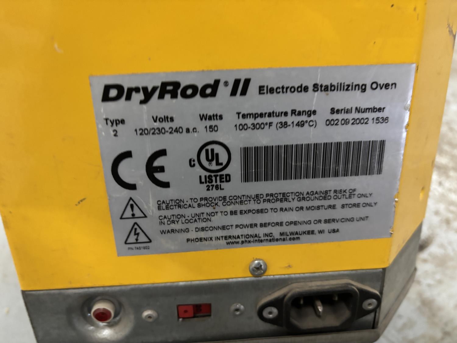 1185 Phoenix International Inc Dry Rod II Electrode Stabilizing Oven