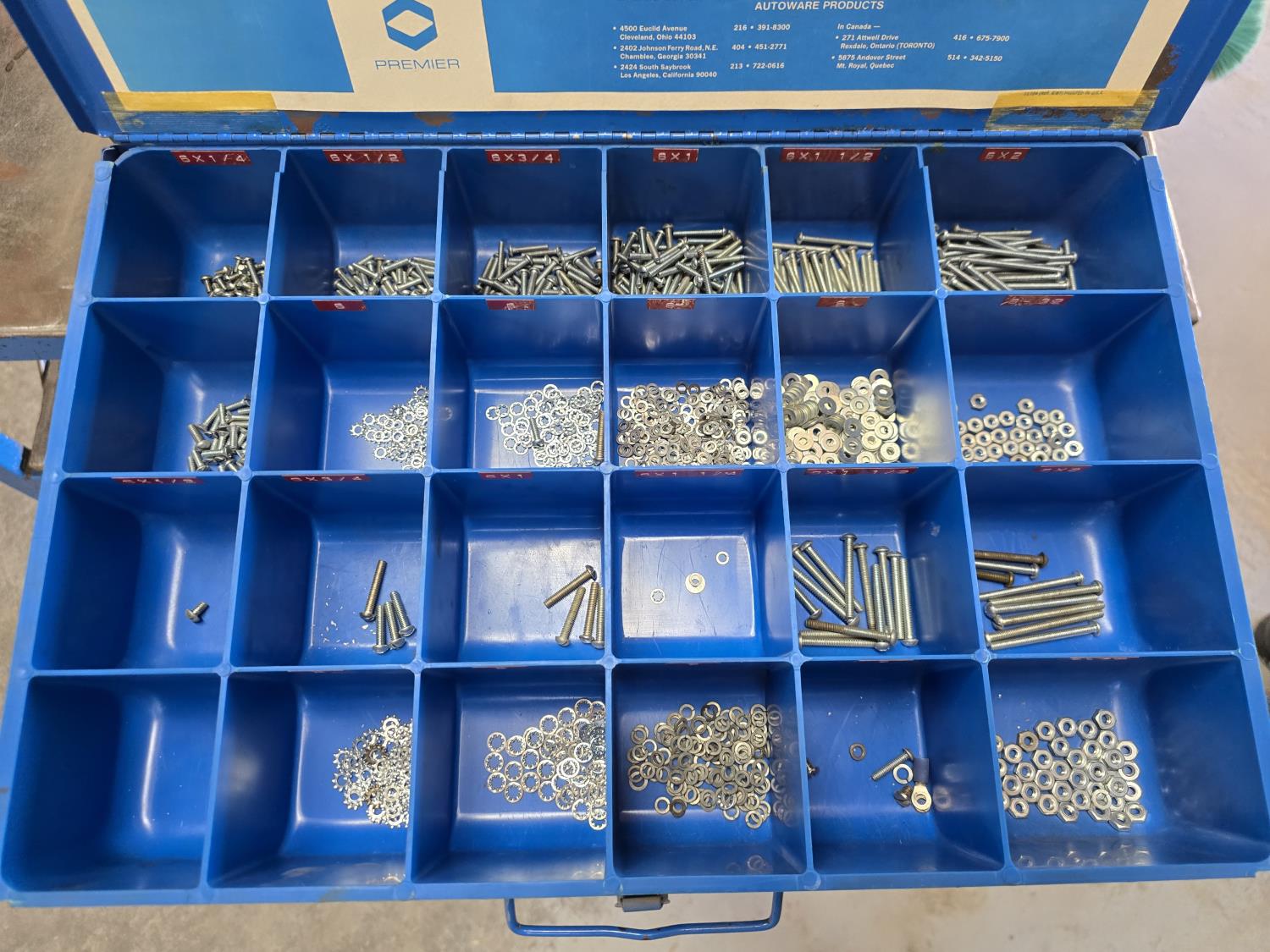 1114 Metal 4 Drawer Compartment Box w/ Contents