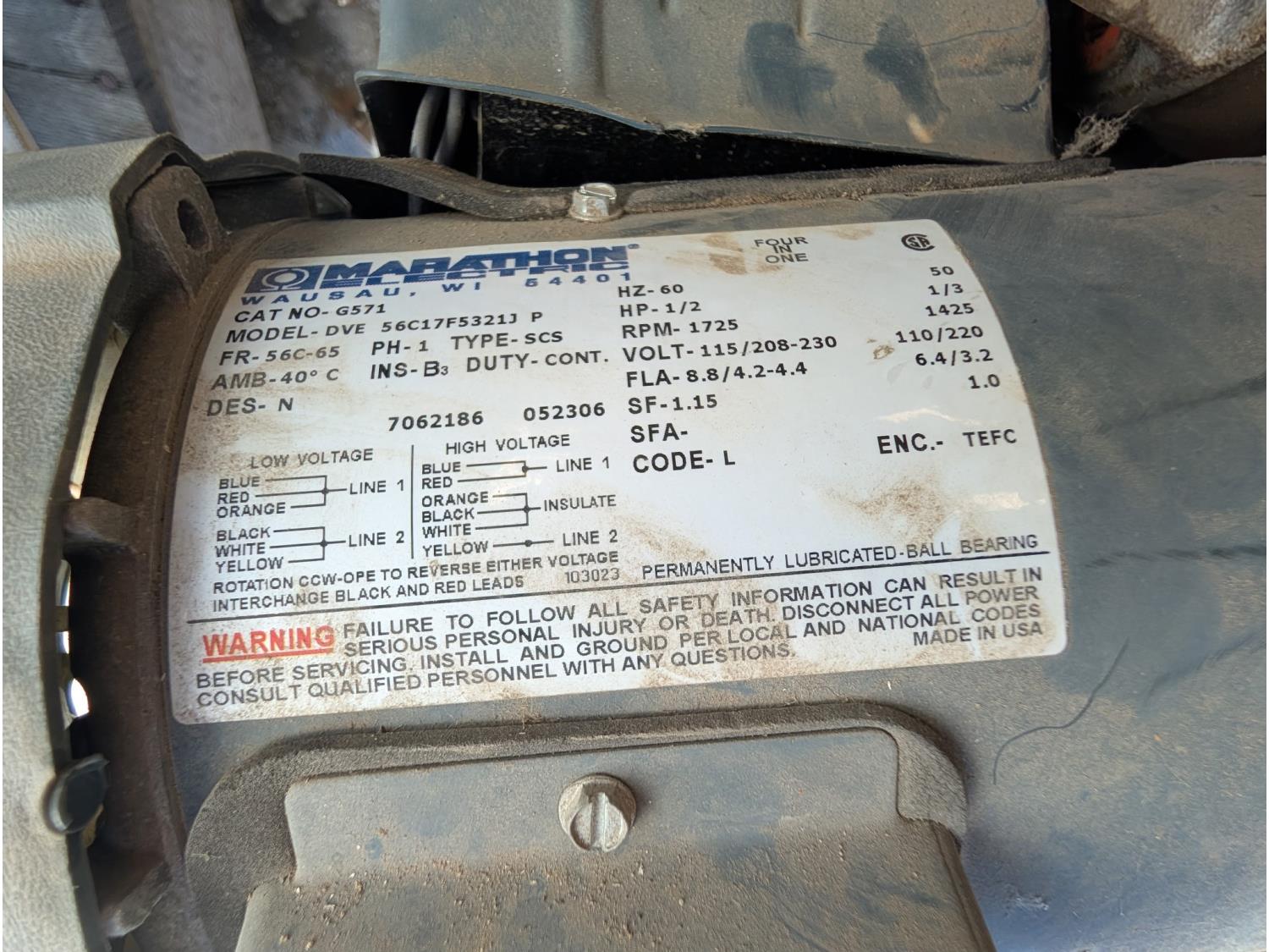 1/2 HP, 115/230 V, single phase Marathon electric motor