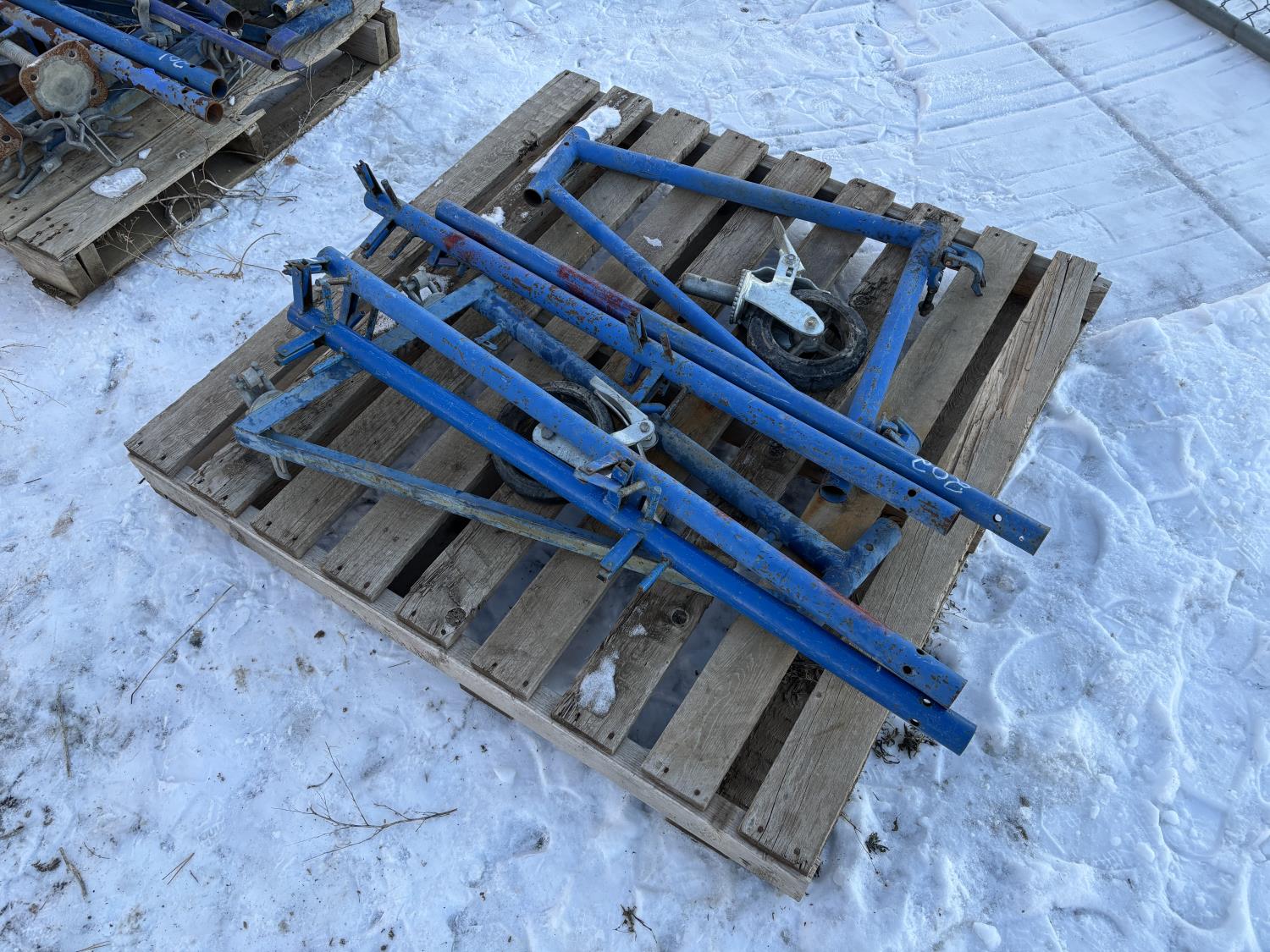(2) outriggers, (2) caster wheels, (4) railing posts