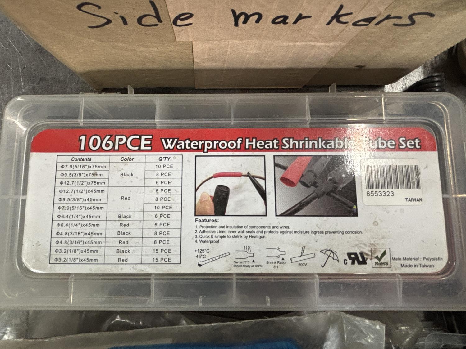 1536 Qty of Trailer Lights, Heat Shrink, Cord Ends, and Wire Loom