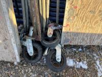 (10) scaffold, (2) 10 ft planks, (4) caster wheels, 8 ft cross bracing