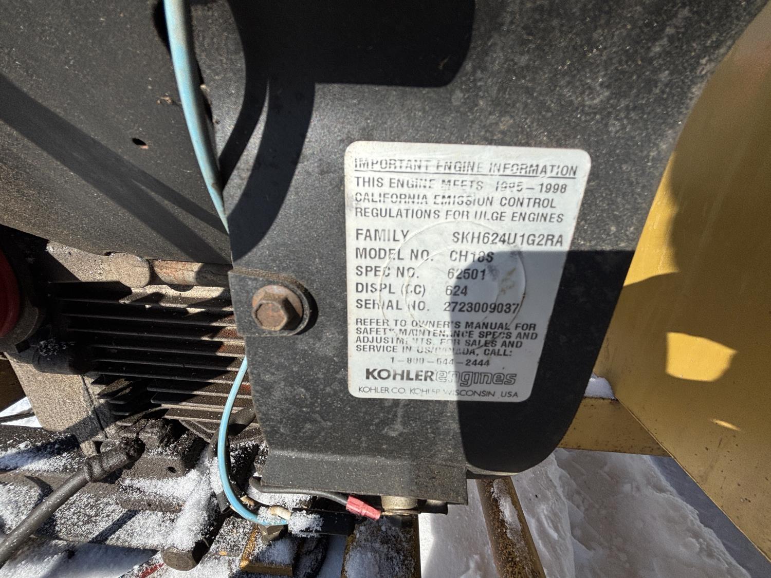 Kohler 18 HP engine, 281000 BTU, 2000 PSI, 3000 lb axles, 207/75R15 tires