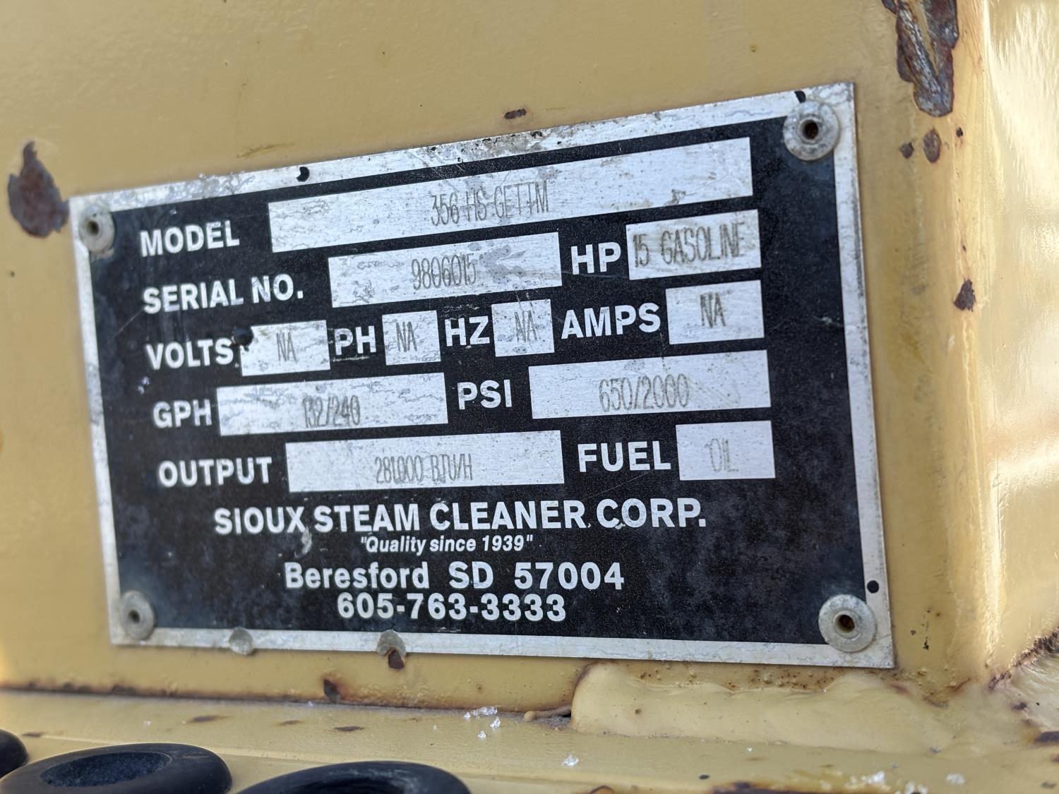 1322D 1998 Sioux Steam Cleaner Corp. 356 HS GETTM Steam Cleaner