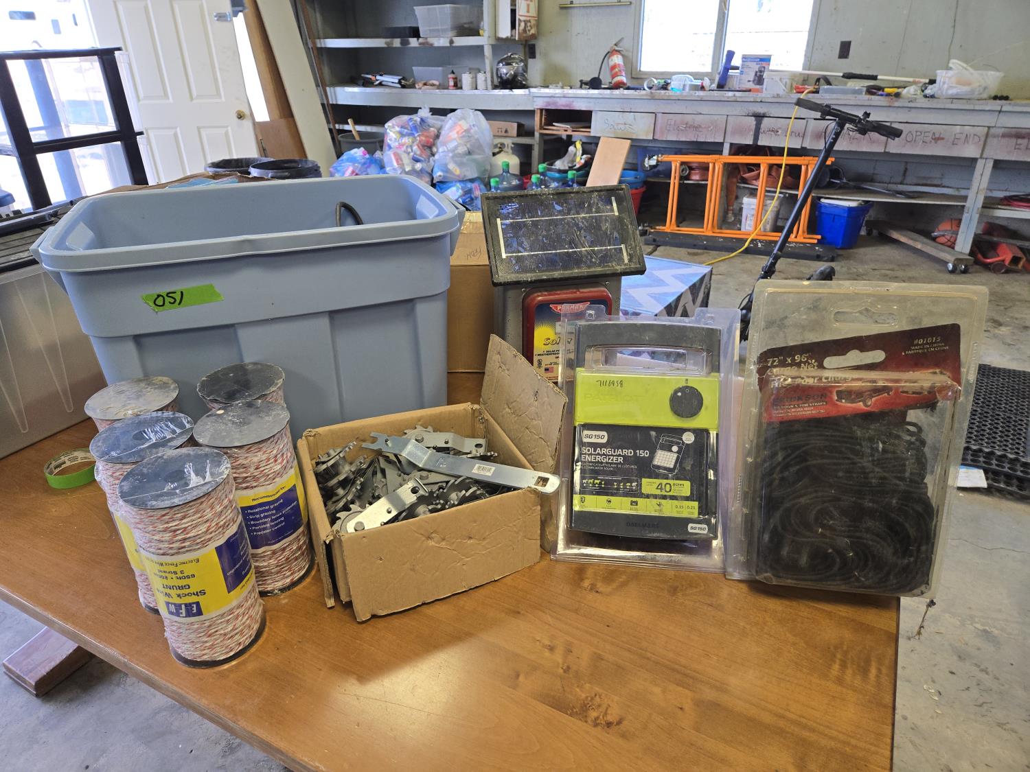 (2) Solar fencers, electric fence wire, fence tensioners, cargo net