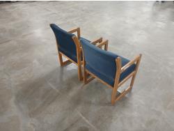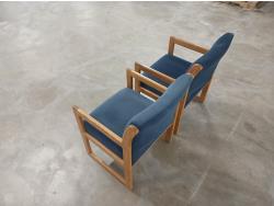 with blue fabric seats, and back rests