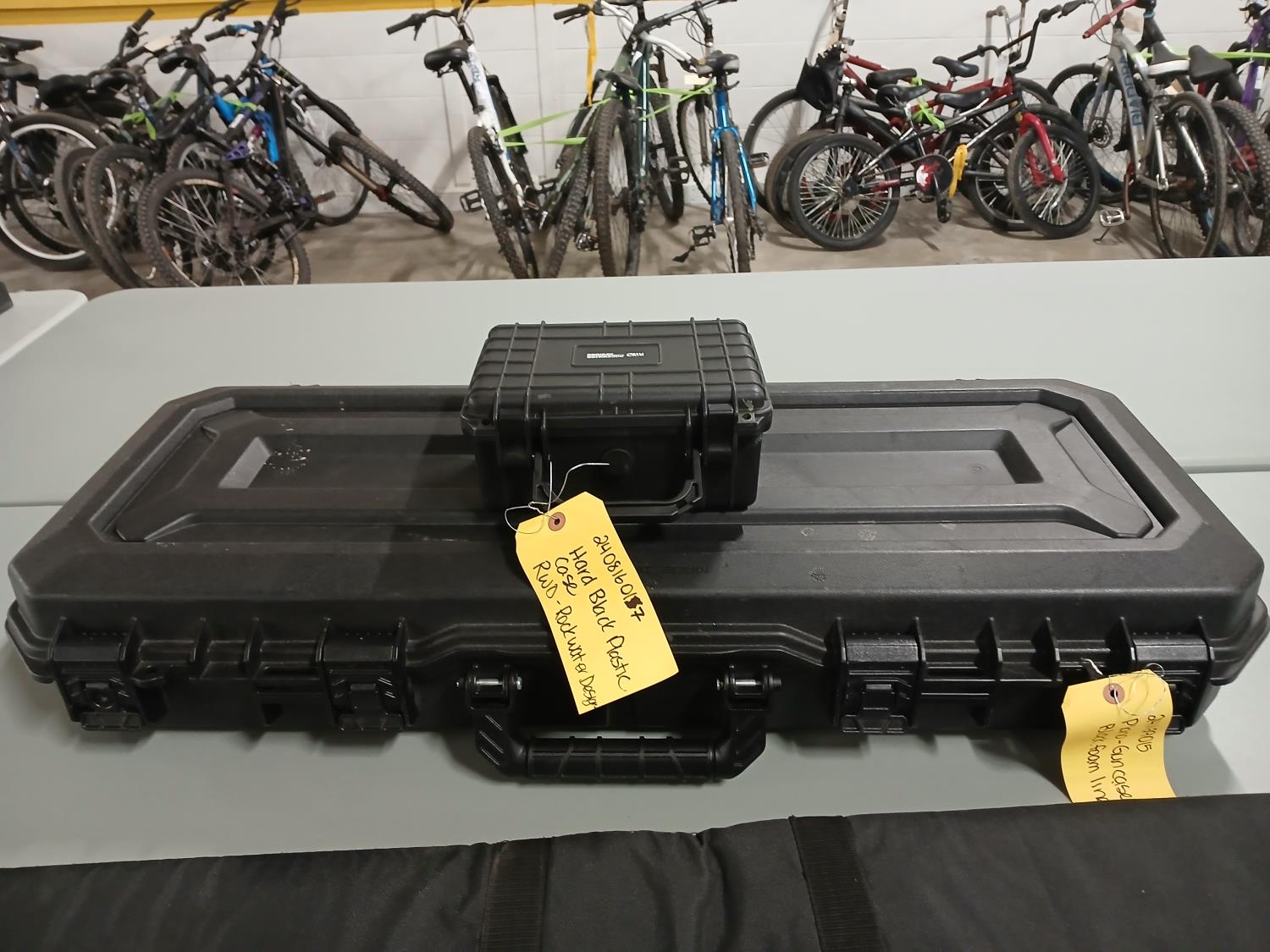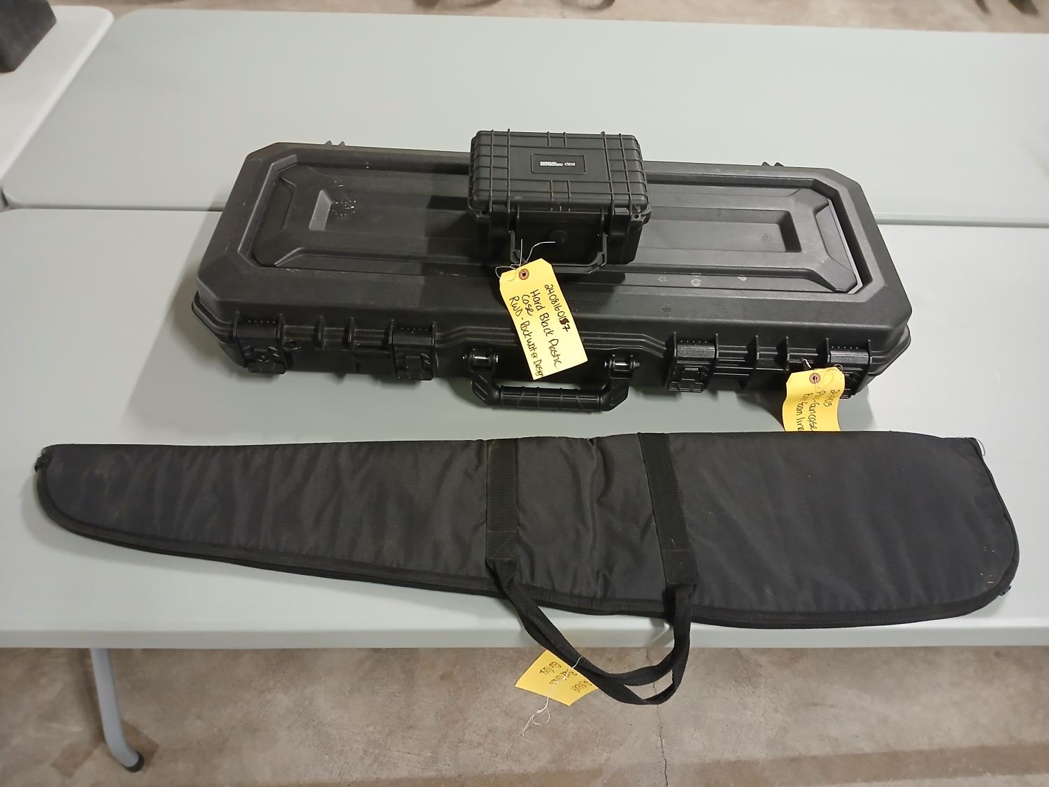 (1) Soft shell firearm case, (1) large hard shell firearm case, (1) small hard shell firearm case