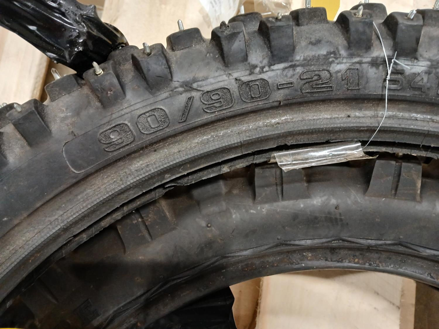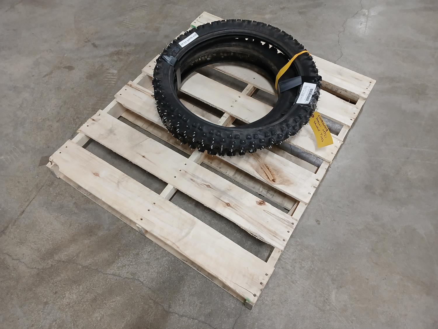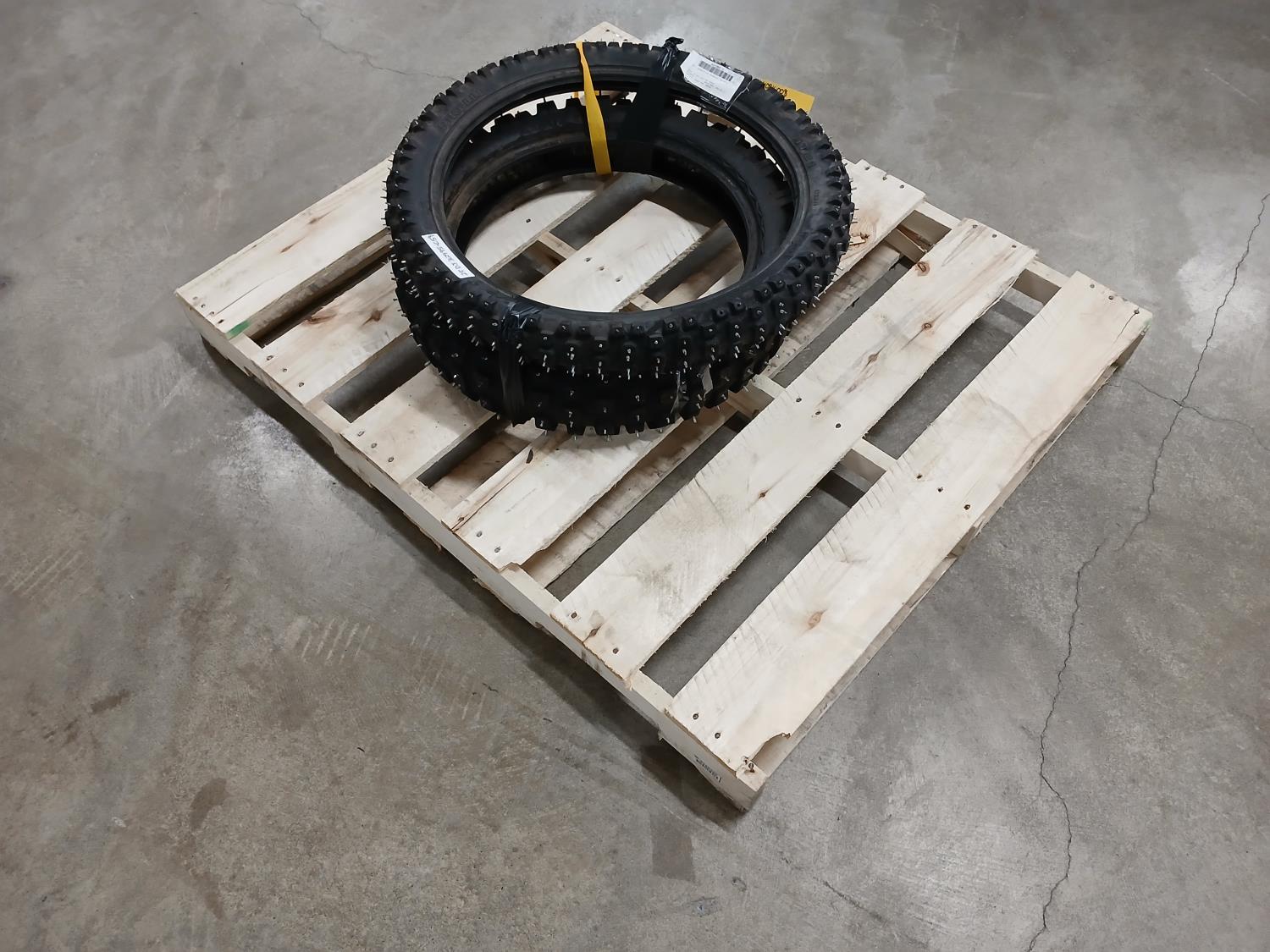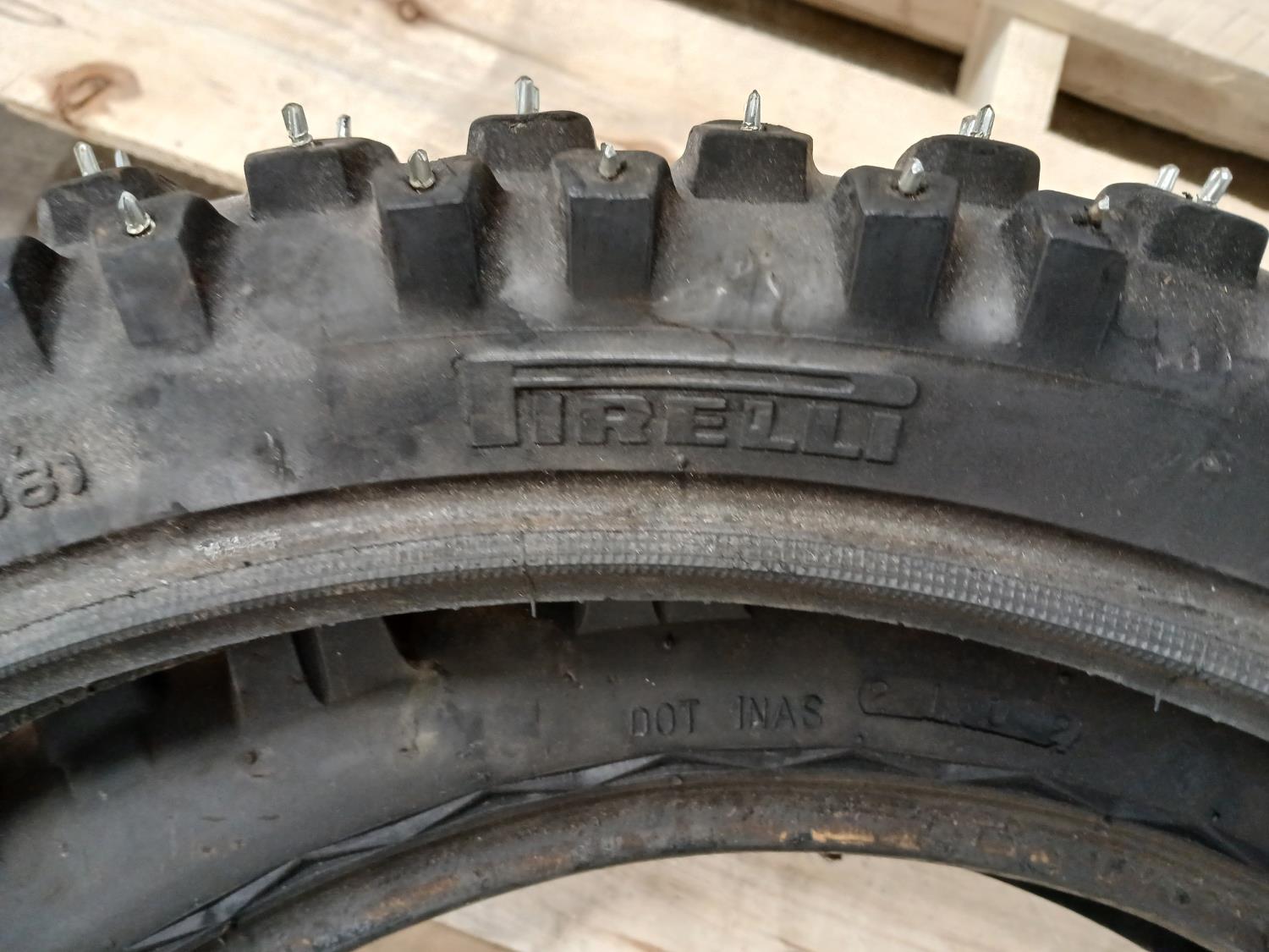 (1) Kings Tire 110/100-18 studded, (1) Pirelli 90/90-21 54R studded