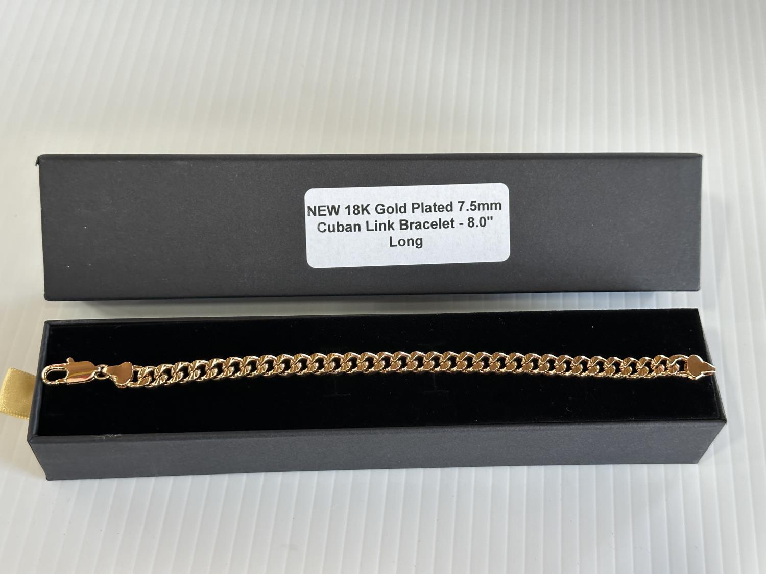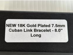 1500 Smartlife 18K Gold Plated 7.5 mm Cuban Link Bracelet (Unused)