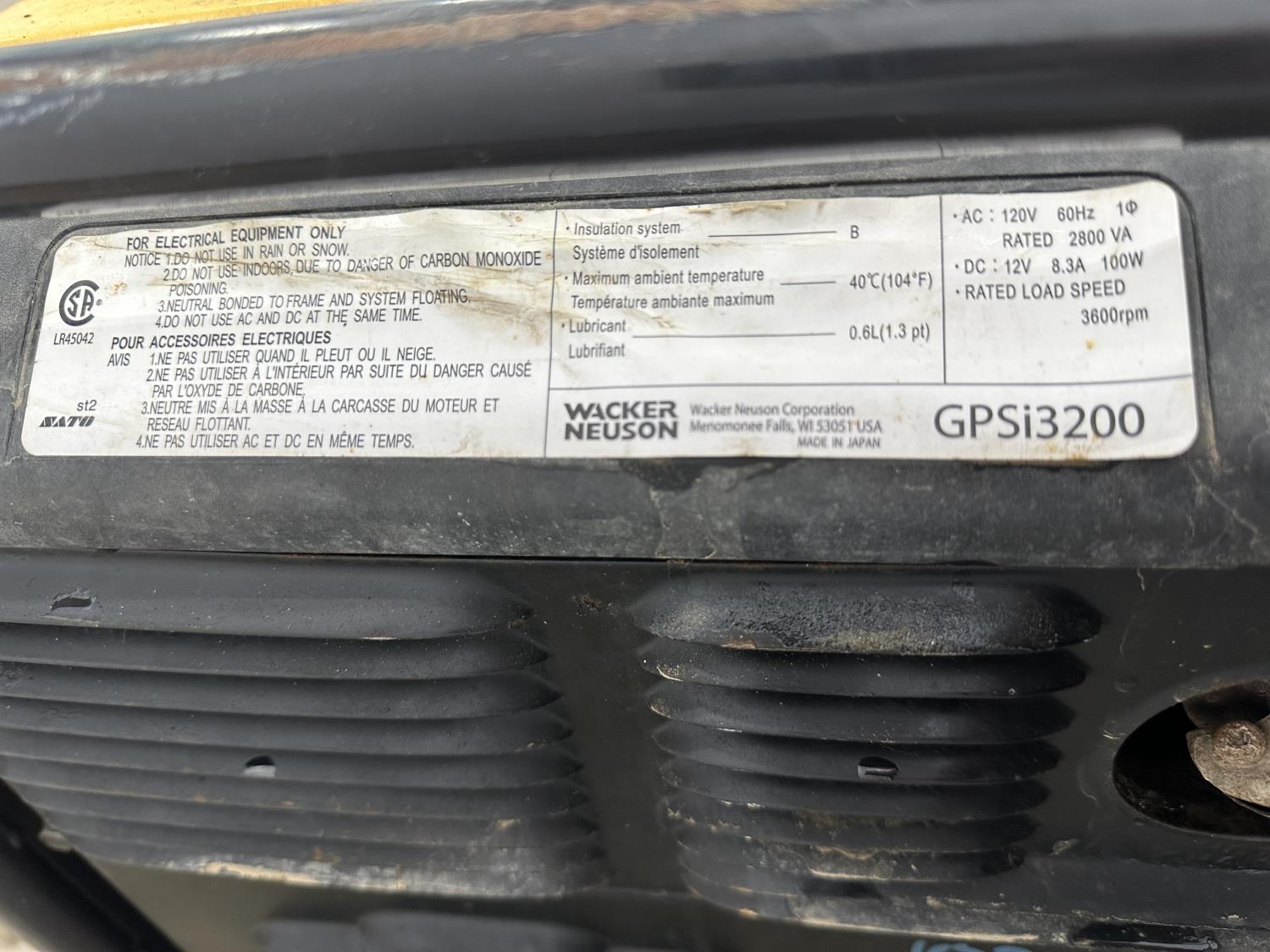 1113 2014 Wacker Neuson GPSi3200 Gas Inverter Generator