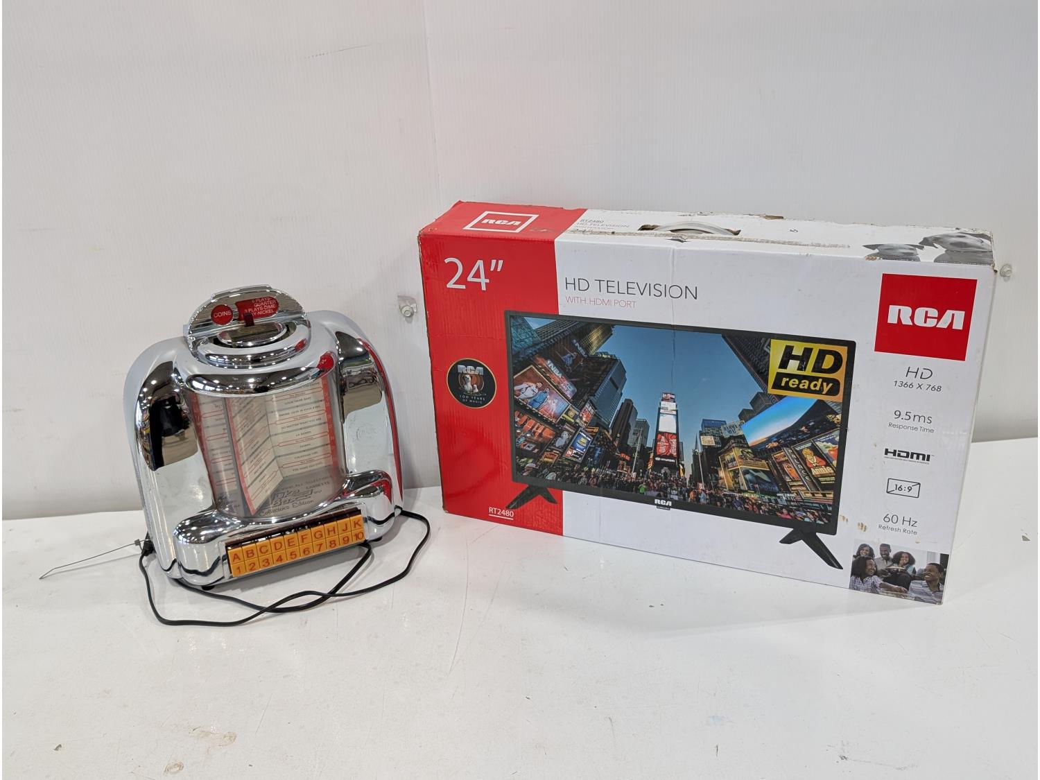 1053 24 Inch RCA TV with remote and Table-Top Juke Box Radio/Cassette Player