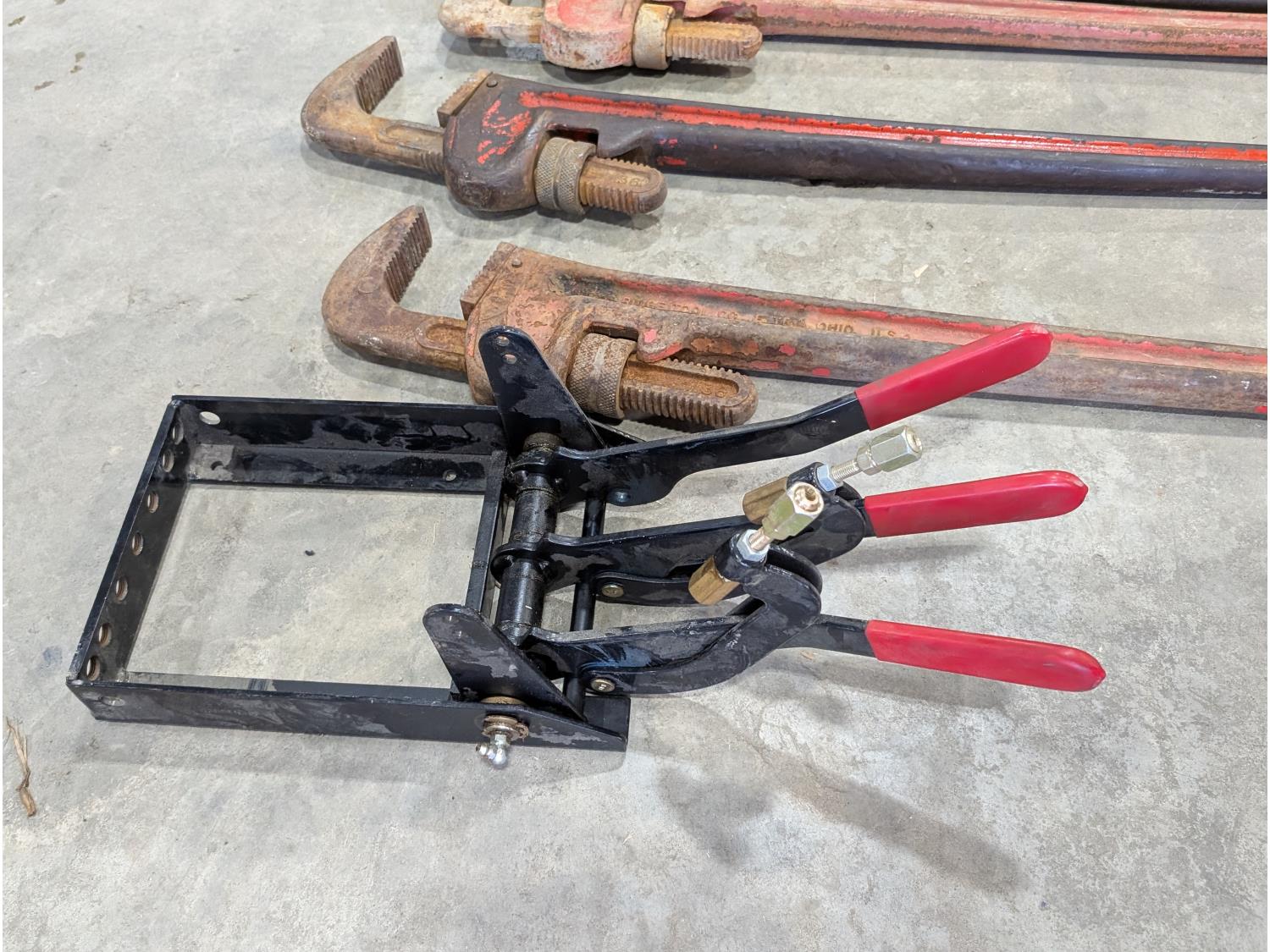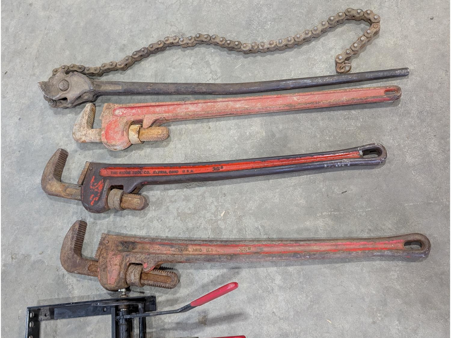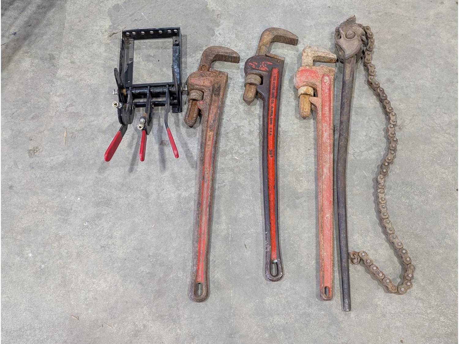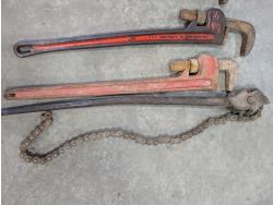 1077 (3) 36 Inch Pipe Wrenches, Mechanical Compact Operator and Chain Wrench