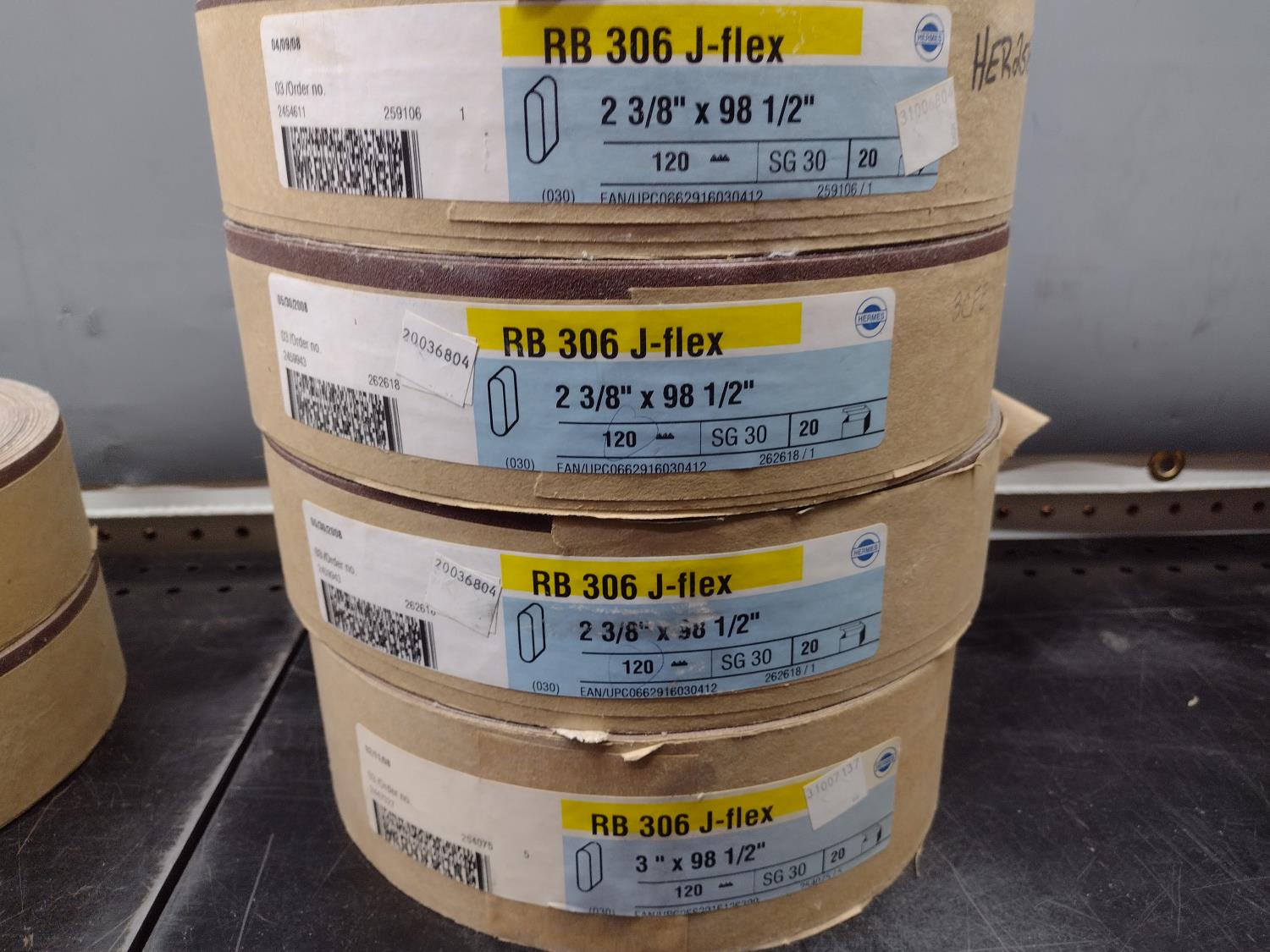 (60±) 2-3/8 X 98.5 inch belts, (20±) 3 inch X 98.5 belts
