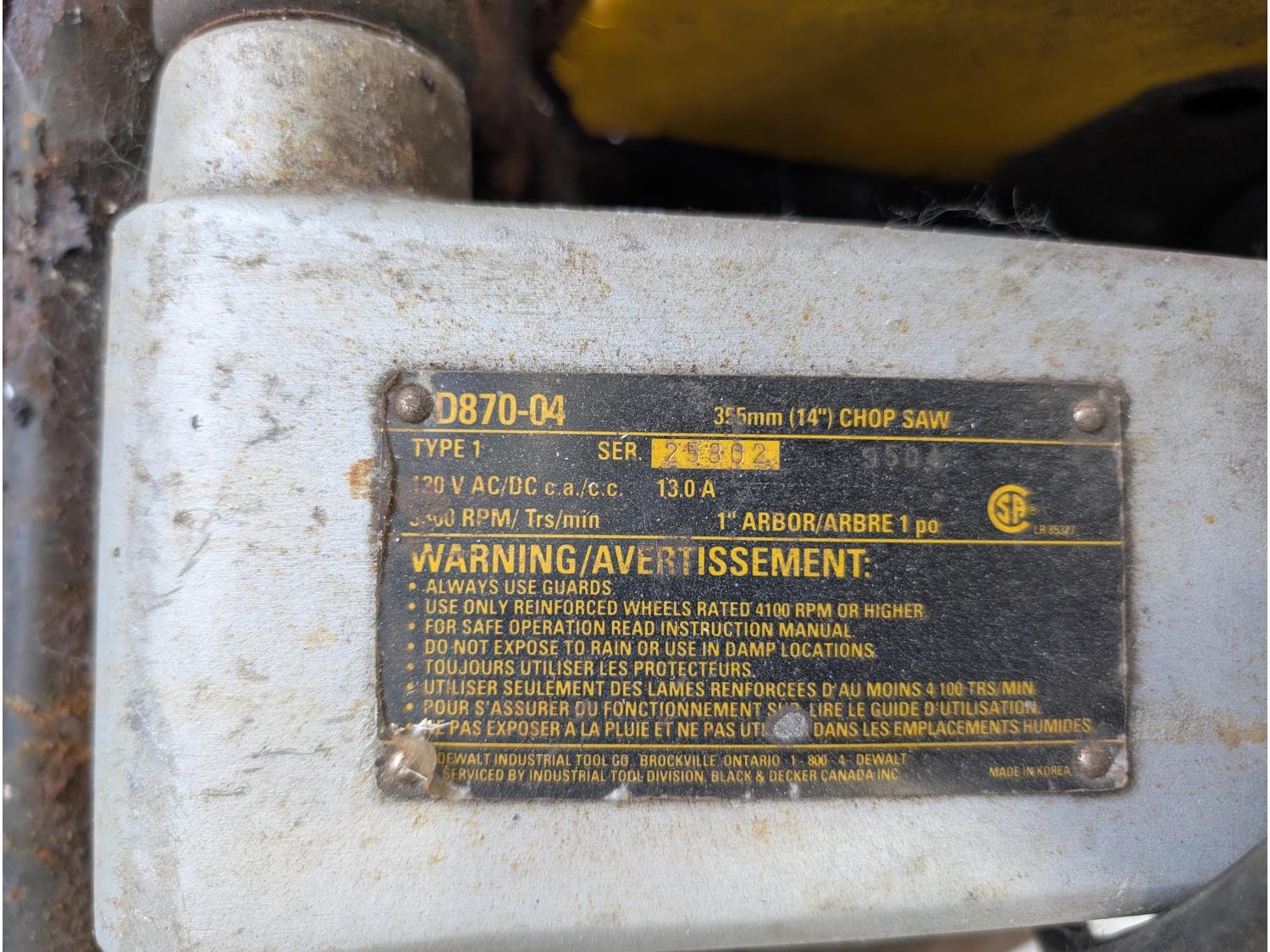 1064 DeWalt D870-04 14 Inch Chop Saw (Inoperable)