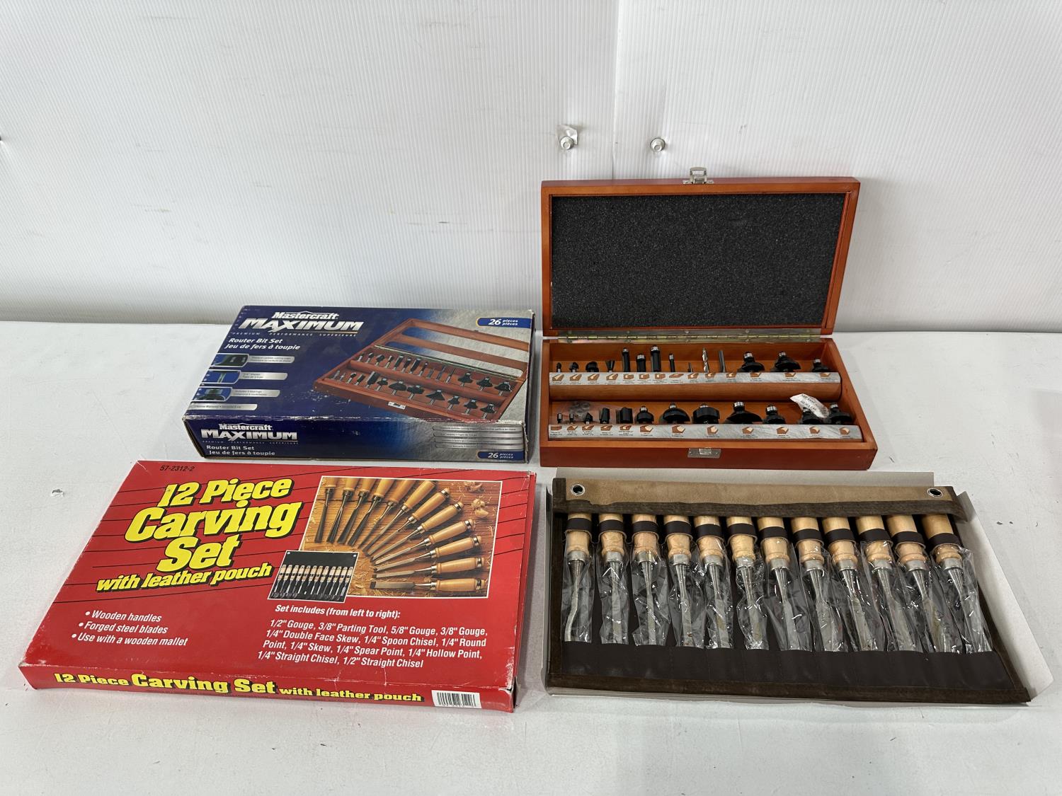1314 Mastercraft 26 Piece Router Bits and 12 Piece Carving Set (Unused)