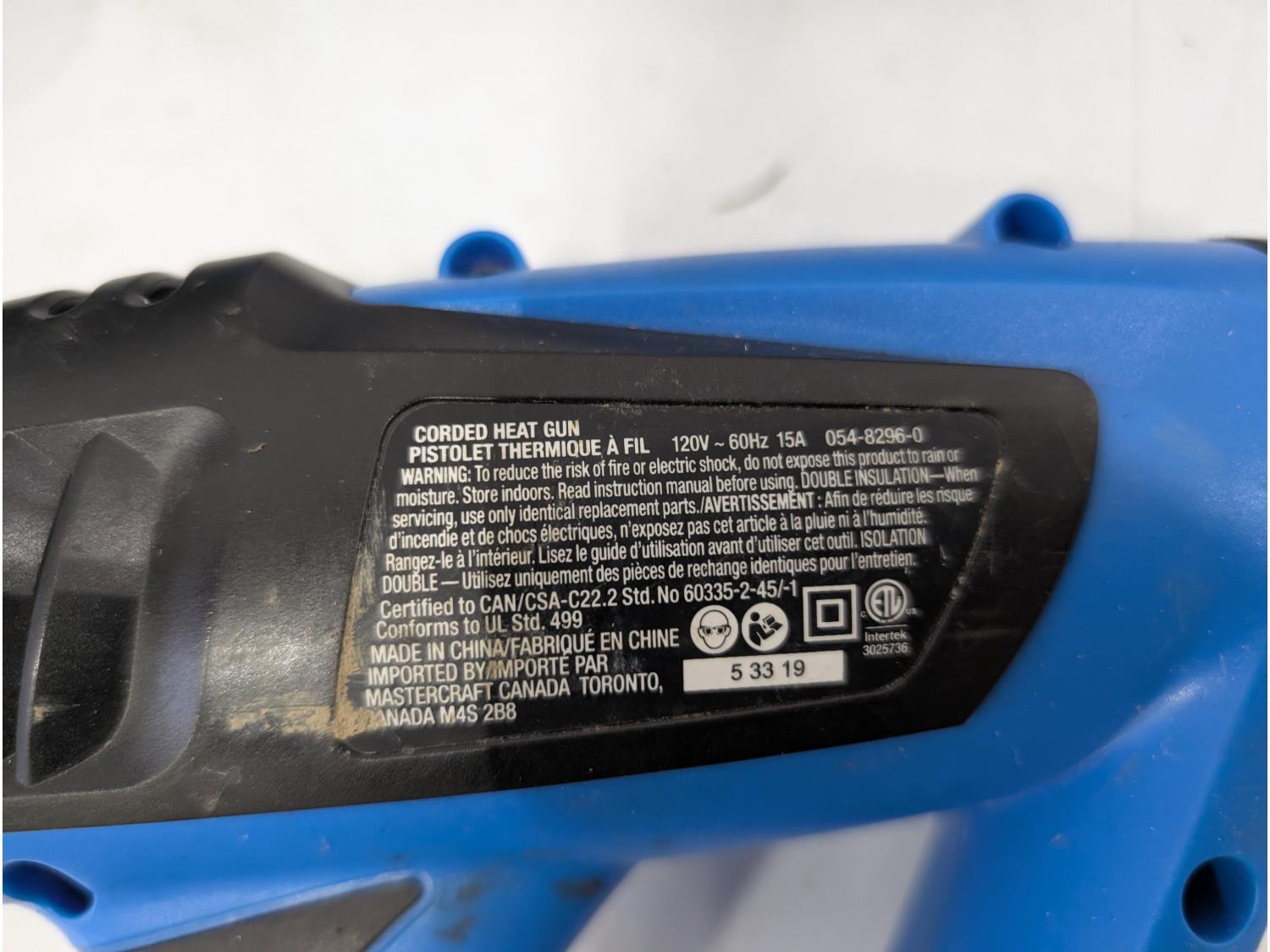 1067 Mastercraft Corded Heat Gun, Hole Saw Kit and Drill Bits