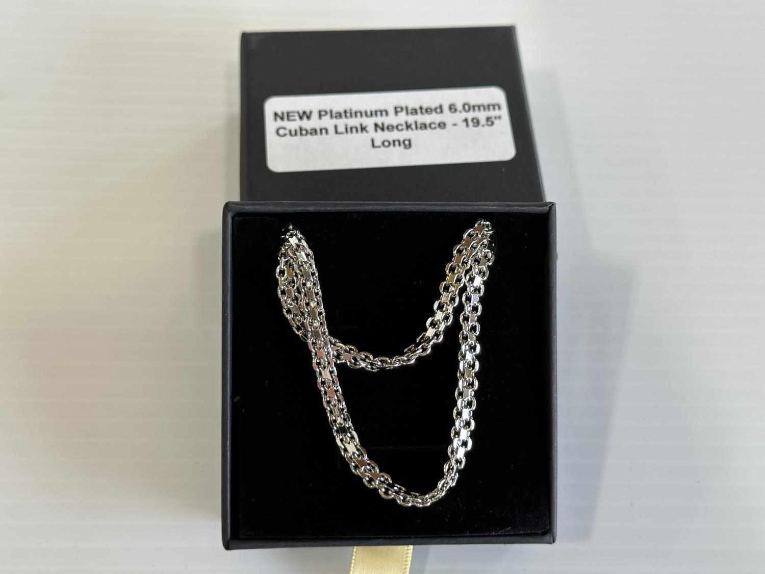 1497 Smartlife Platinum Plated 6.0 mm Cuban Link Necklace (Unused)