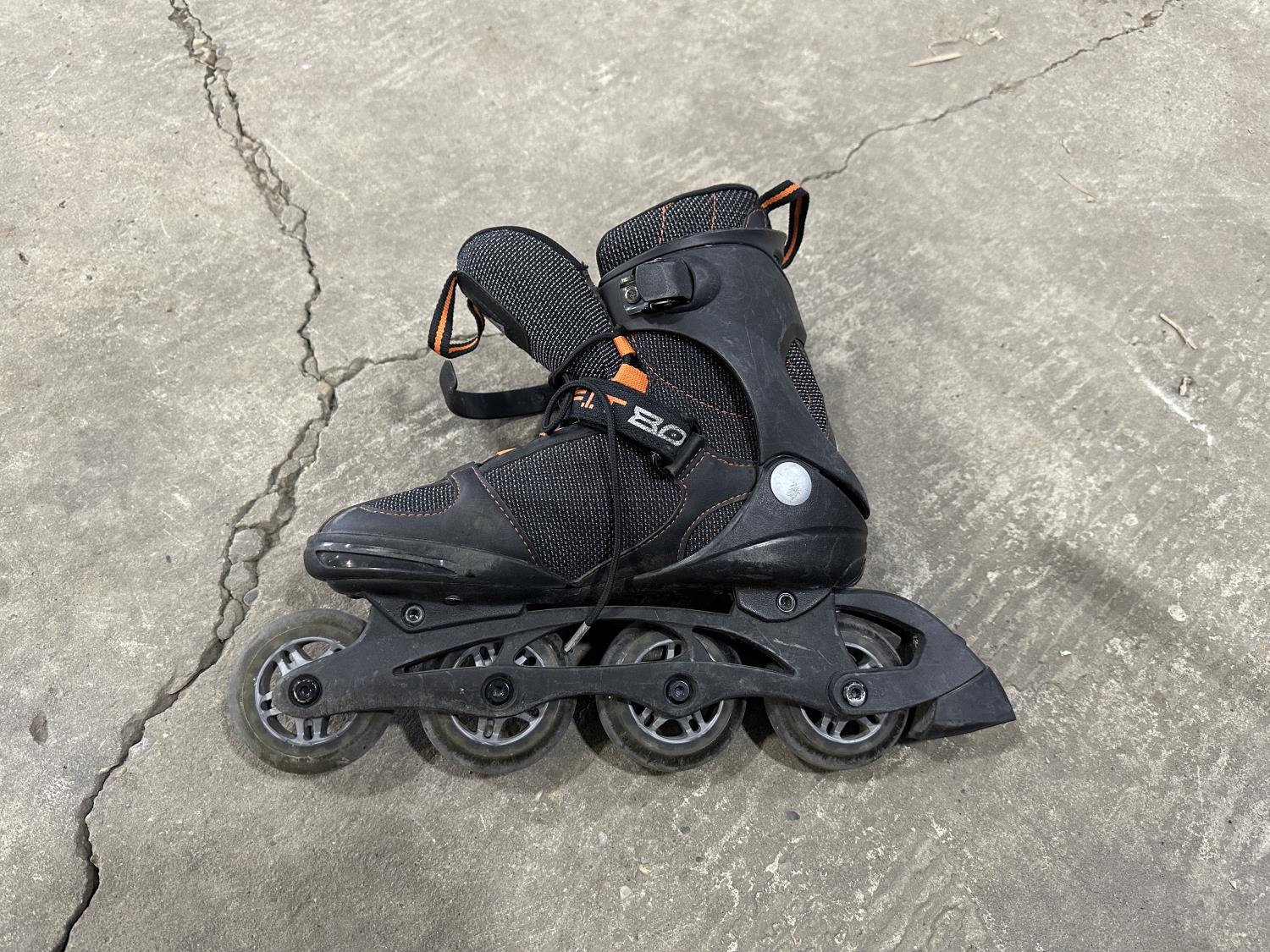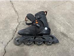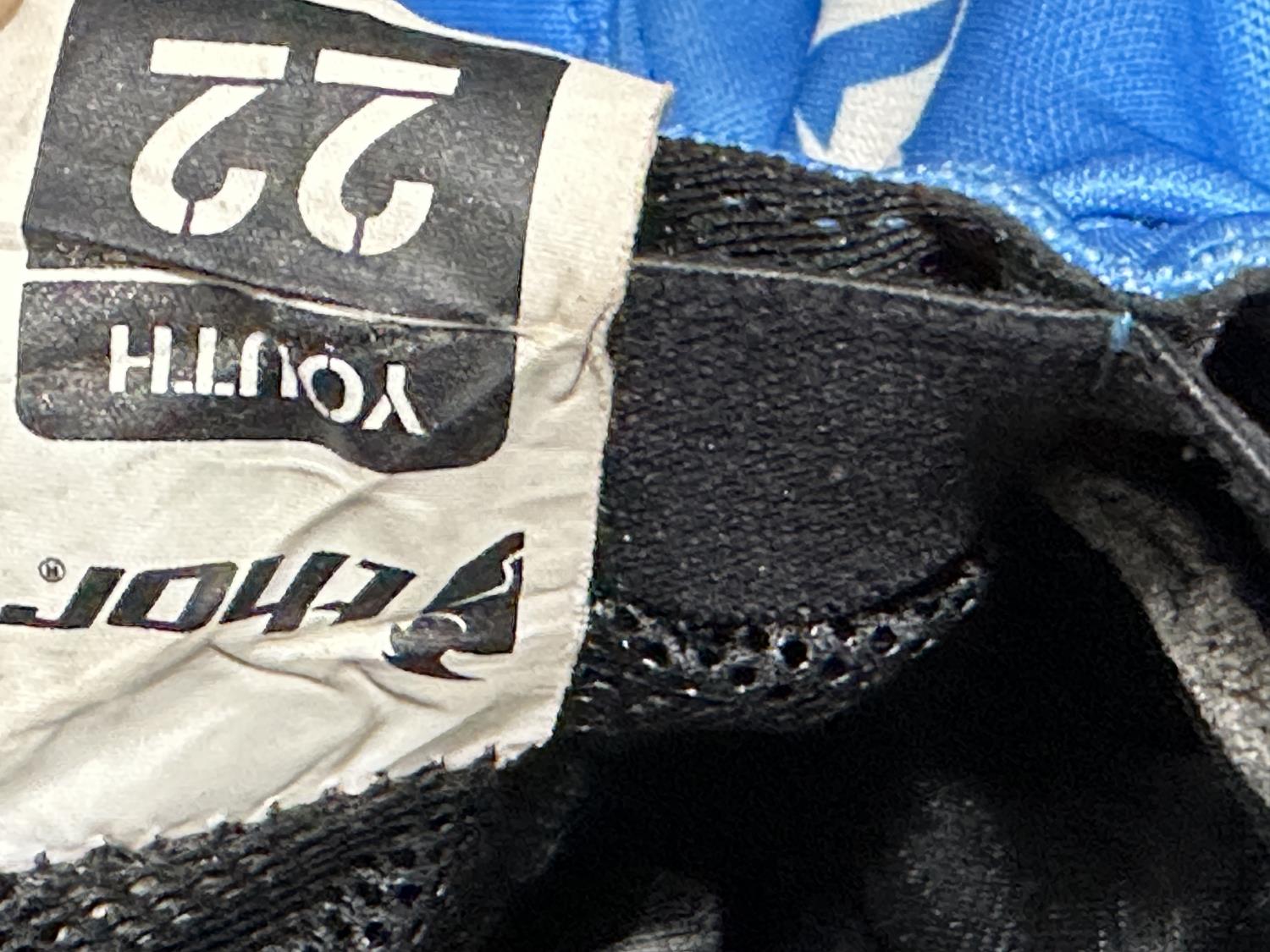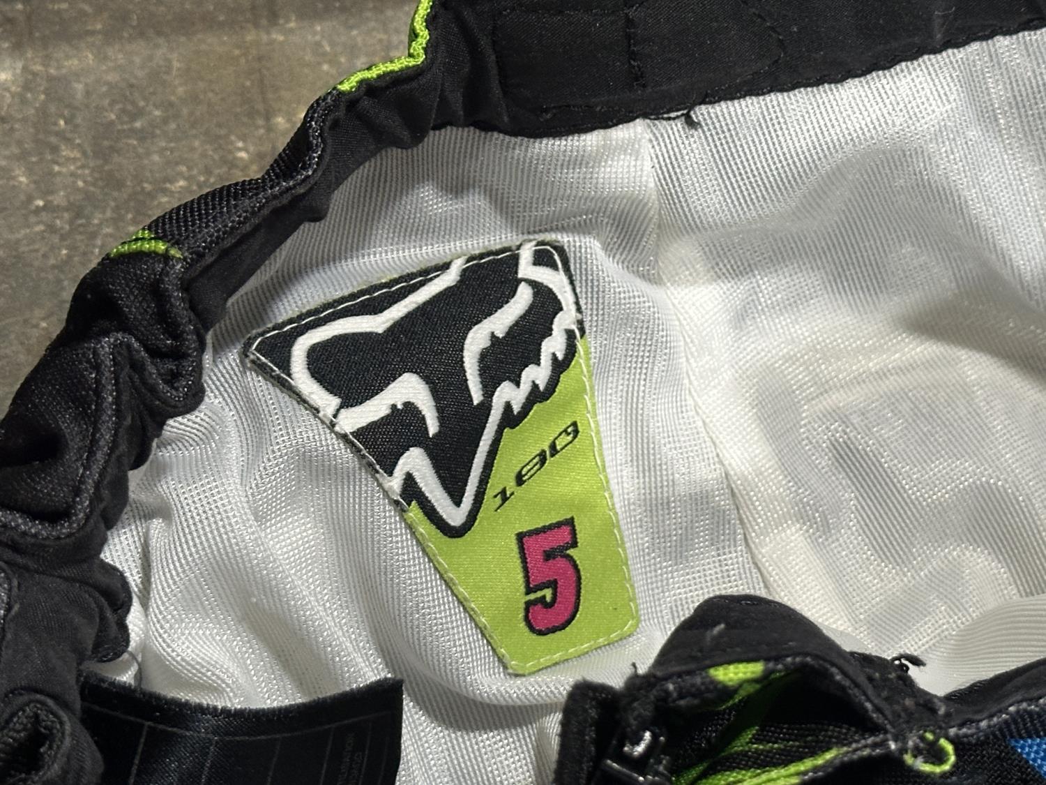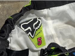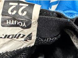 (3) motocross pants youth sizes, (2) helmets, pair of roller skates, door jam pull up bar, ab roller, FOX backpack