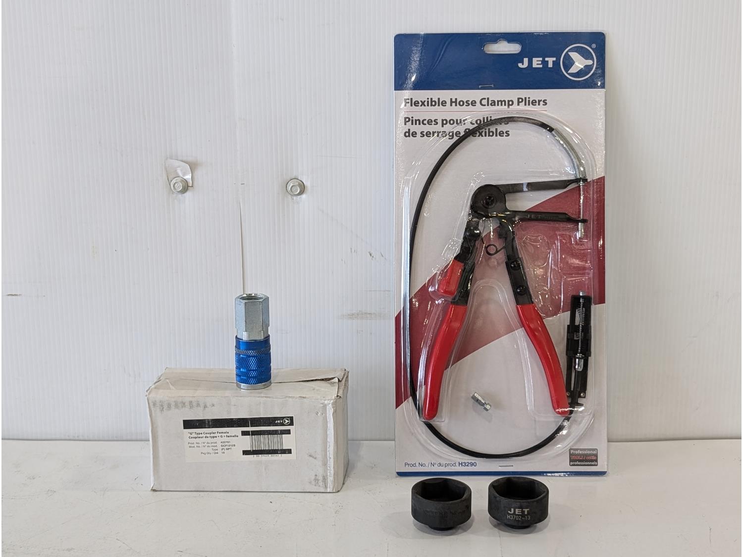 flexible hose clamp pliers, (10) G type female coupler, (2) 36 mm 3/8 inch drive sockets