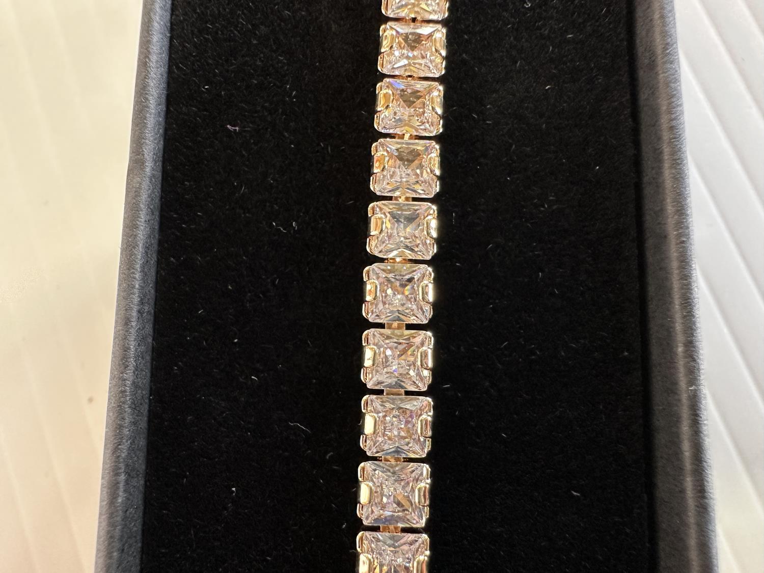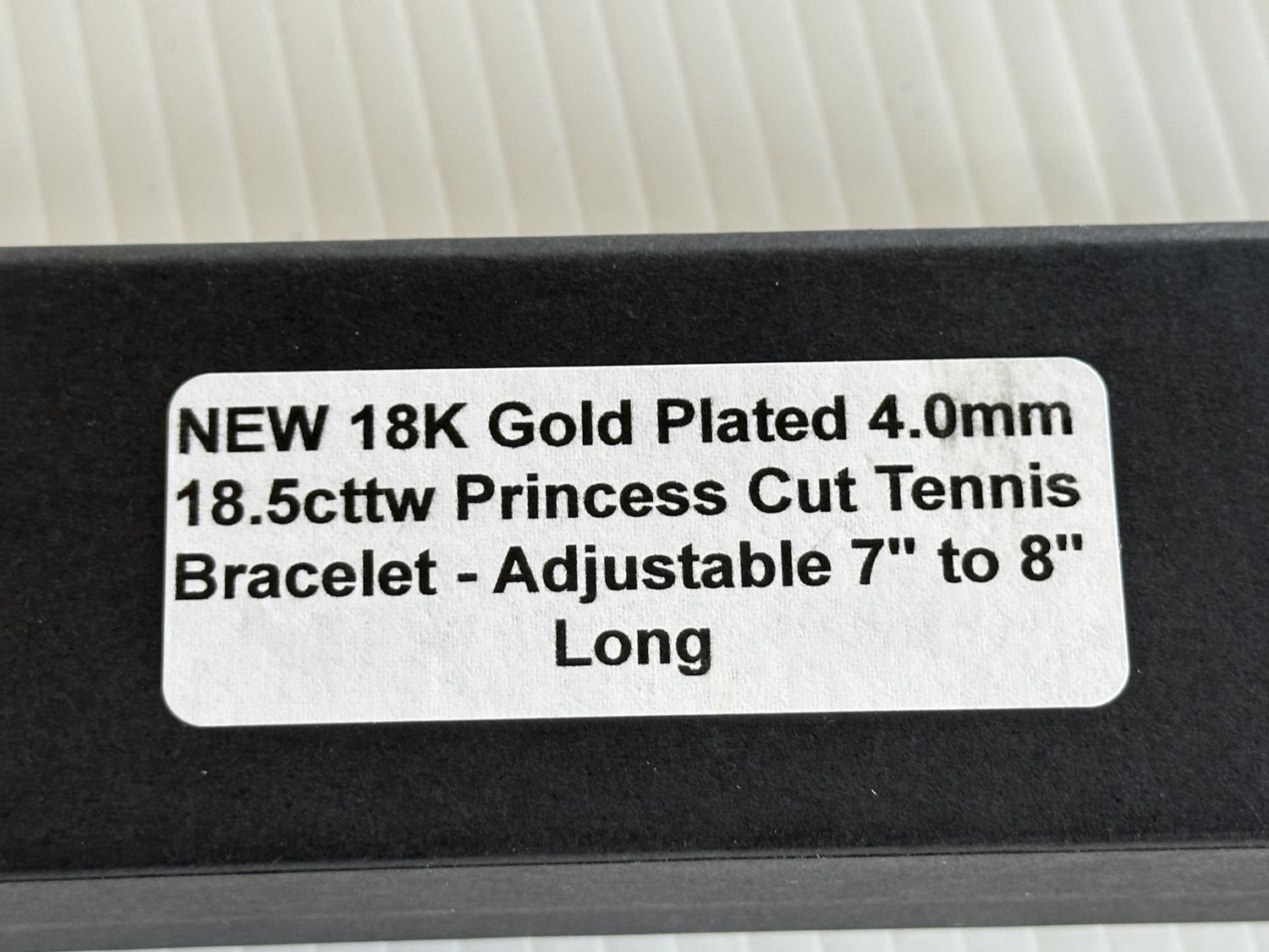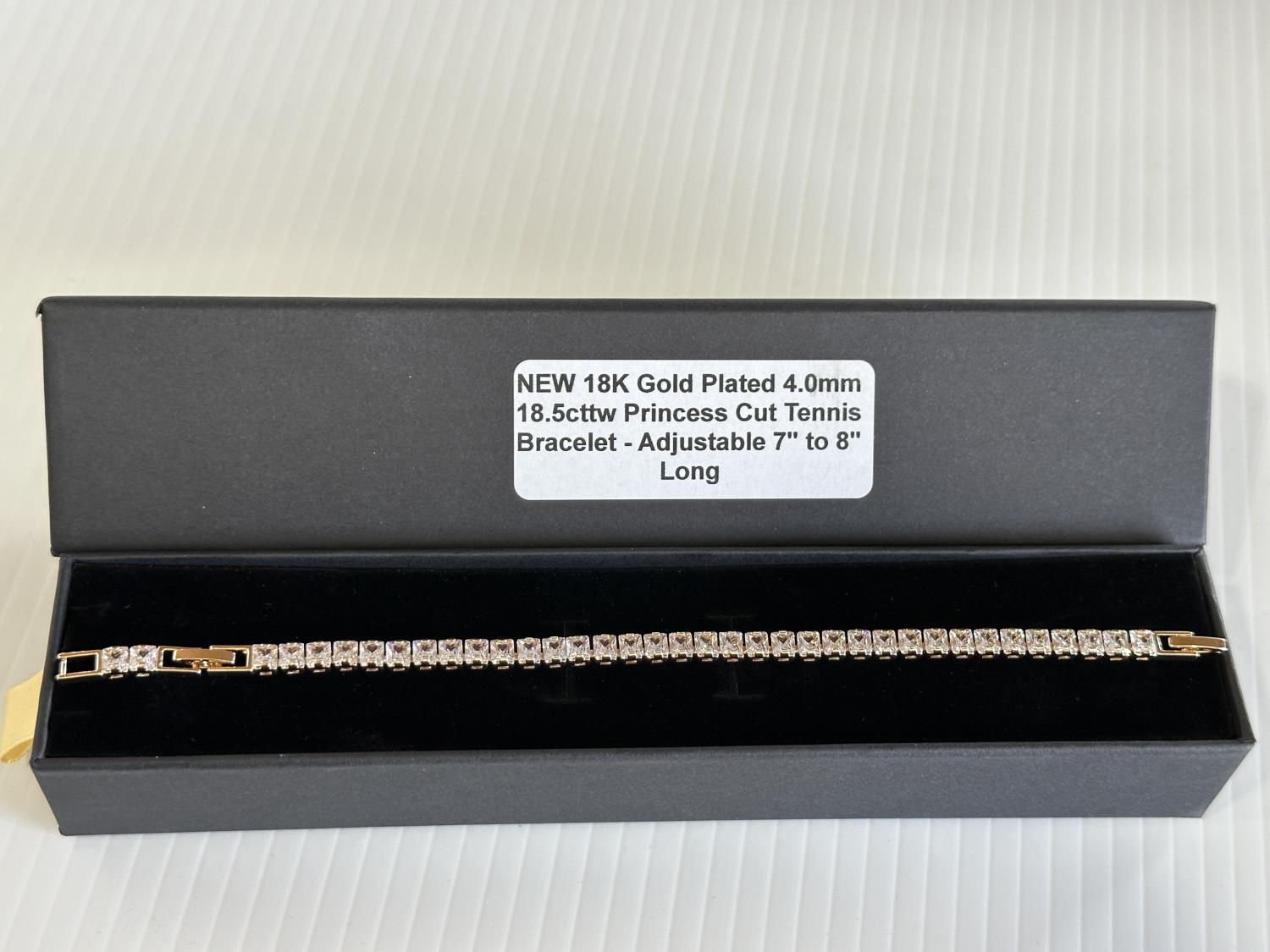 18.5 total carat weight, 18K gold plated, adjustable 7 inch to 8 inch