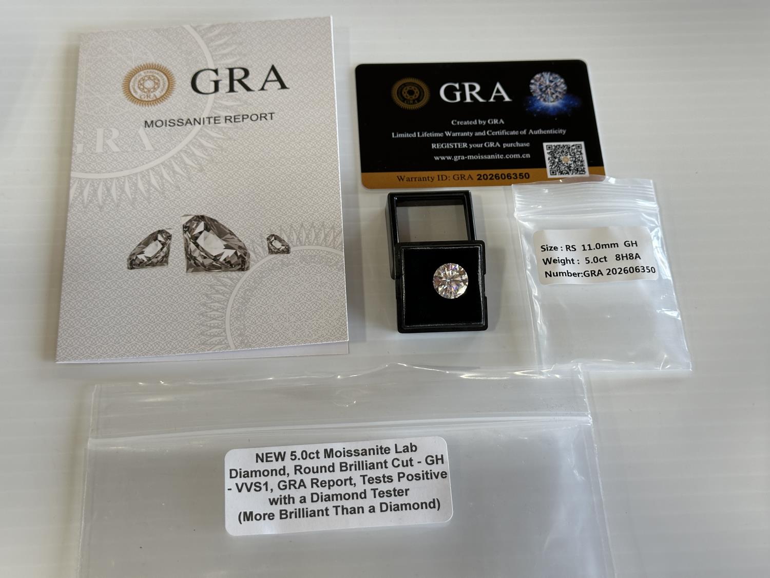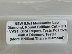1484 Smartlife 5.0 Ct Moissanite Round Brilliant Cut Lab Diamond (Unused)