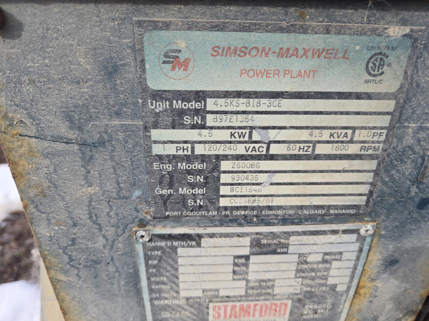 811 (1) Stamford Diesel Generator, (1) Small Gas Ohv Generator (Inoperable)