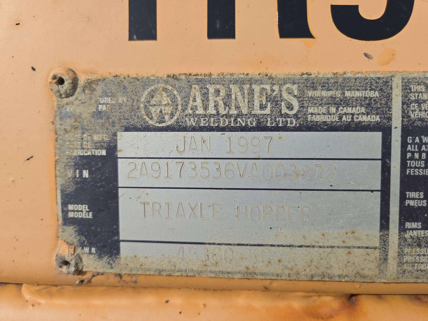 761 1997 Arnes Tri-Axle Cross Clam Bottom Dump Trailer