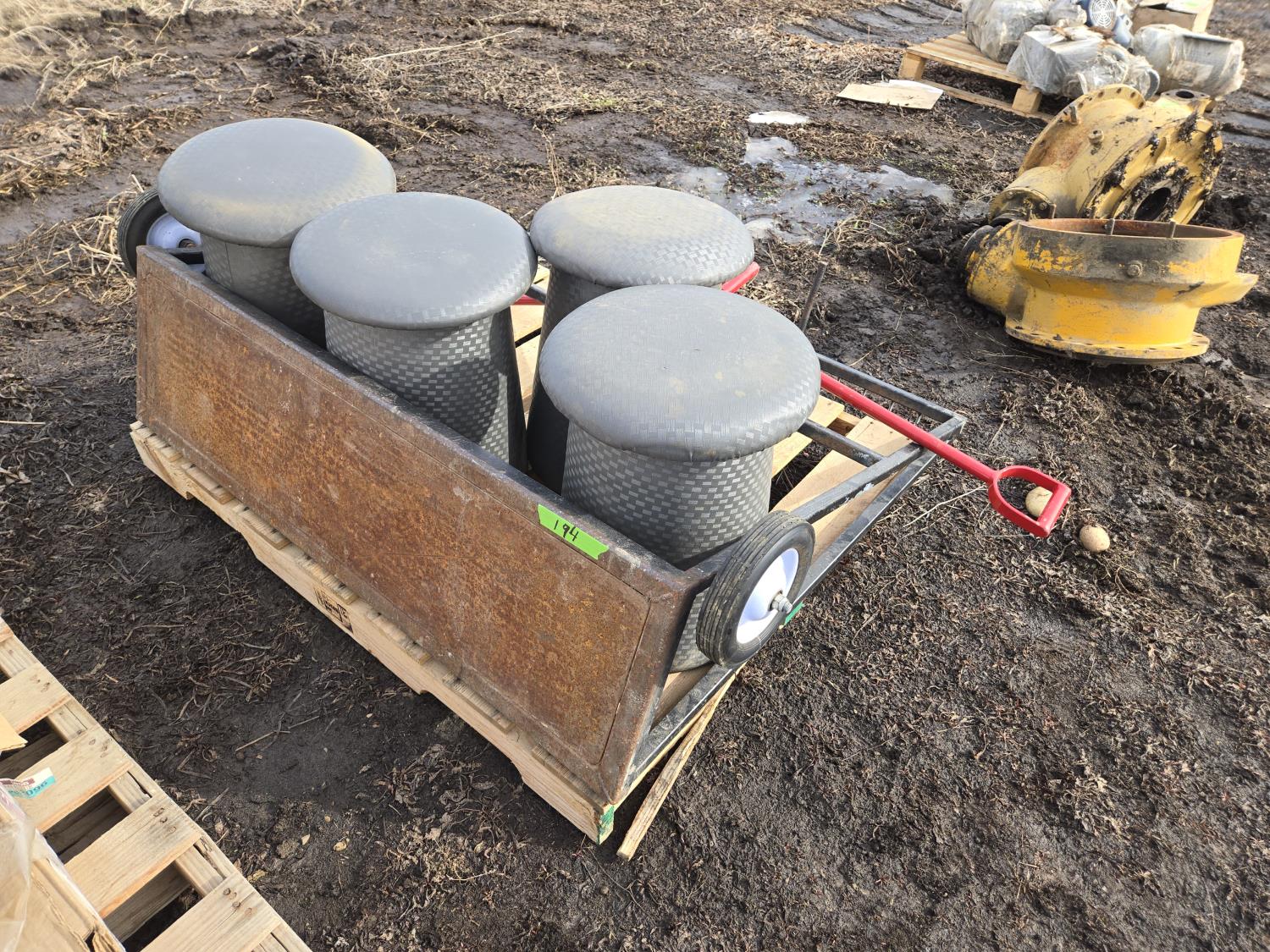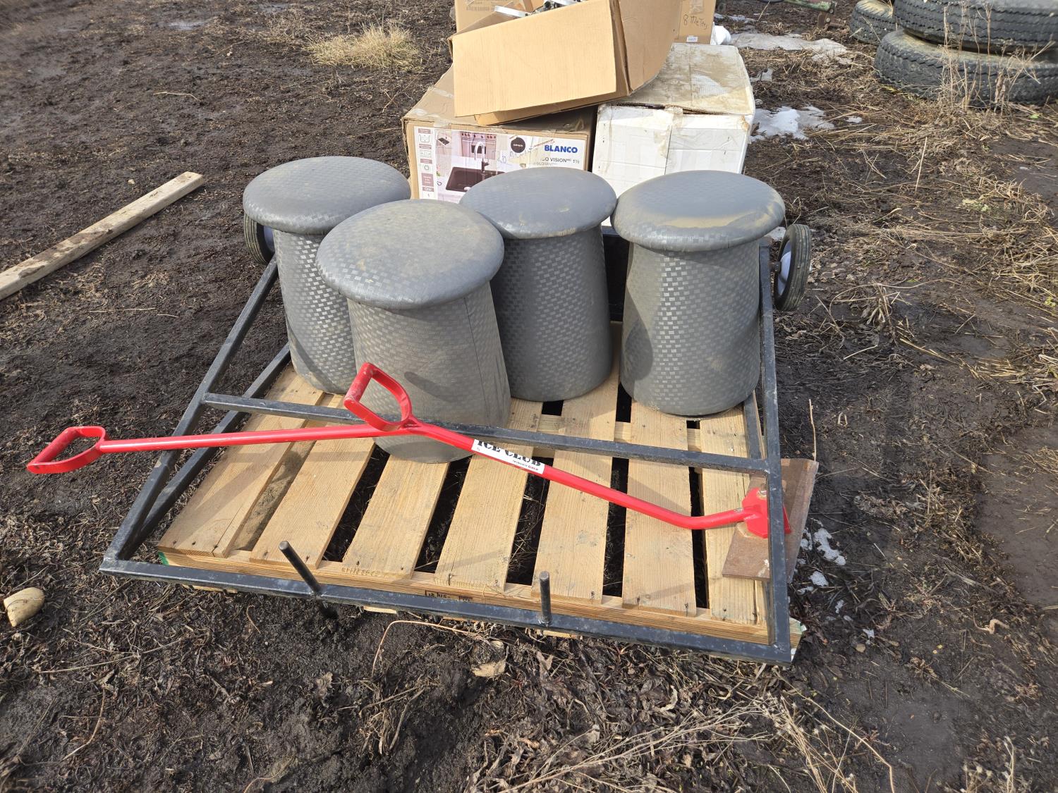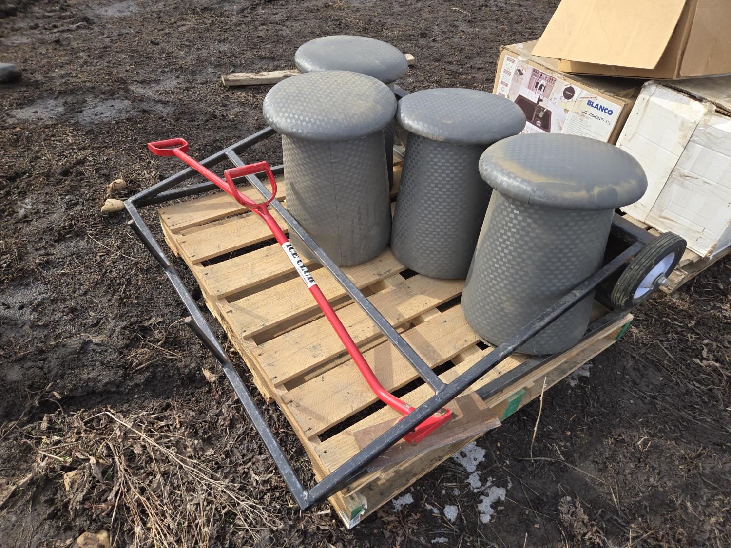 861 (4) Poly Stools, (1) Ice Scraper, (1) Metal Frame On Wheels