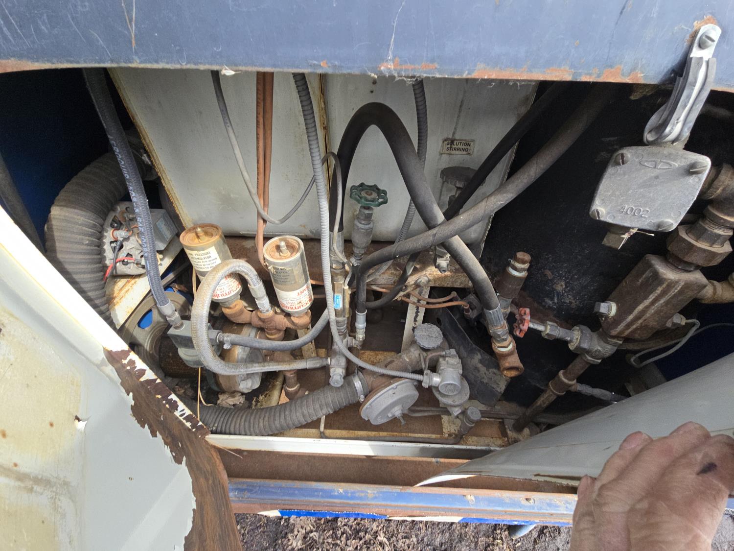 Twin cylinder Briggs & Stratton gas engine, water storage tank, pintle hitch, spring suspension, mobile home axles, 8-14.5 tires