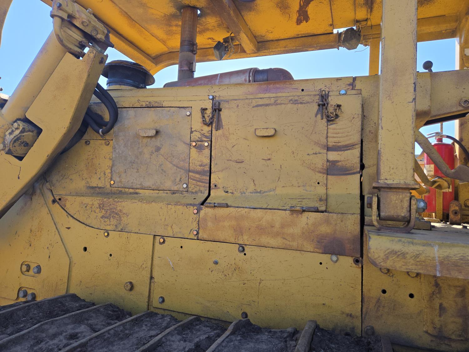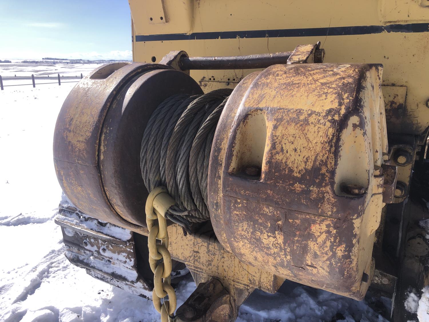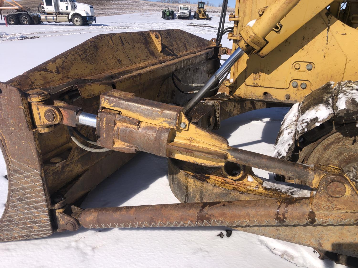 Open station with canopy, 3 speed powershift transmission, brush sweeps, 15 Ft twin tilt angle S blade dozer, Carco winch