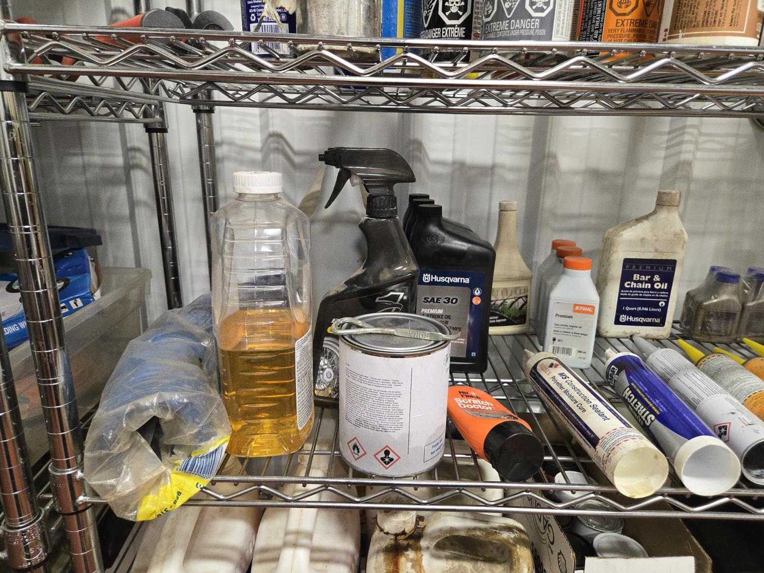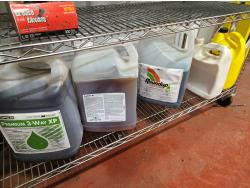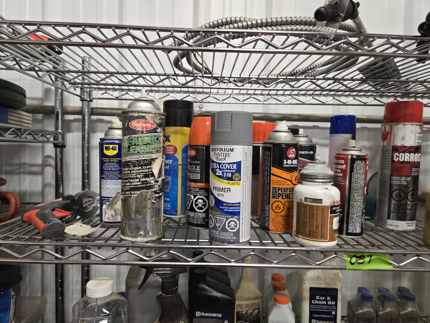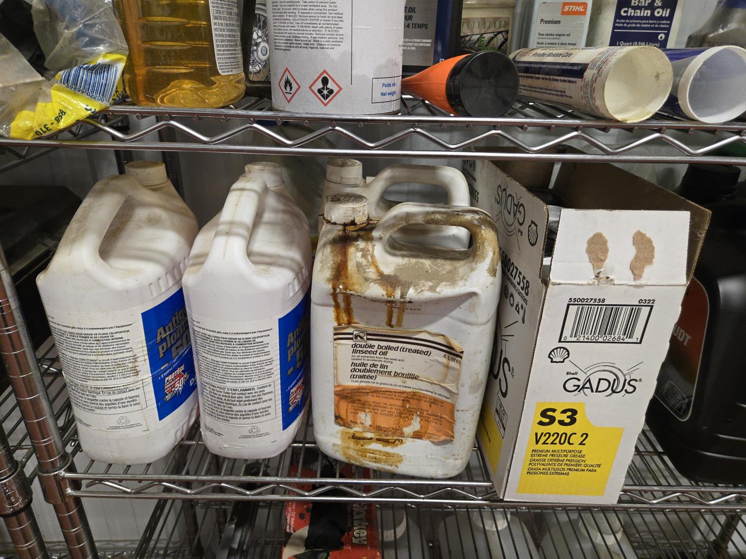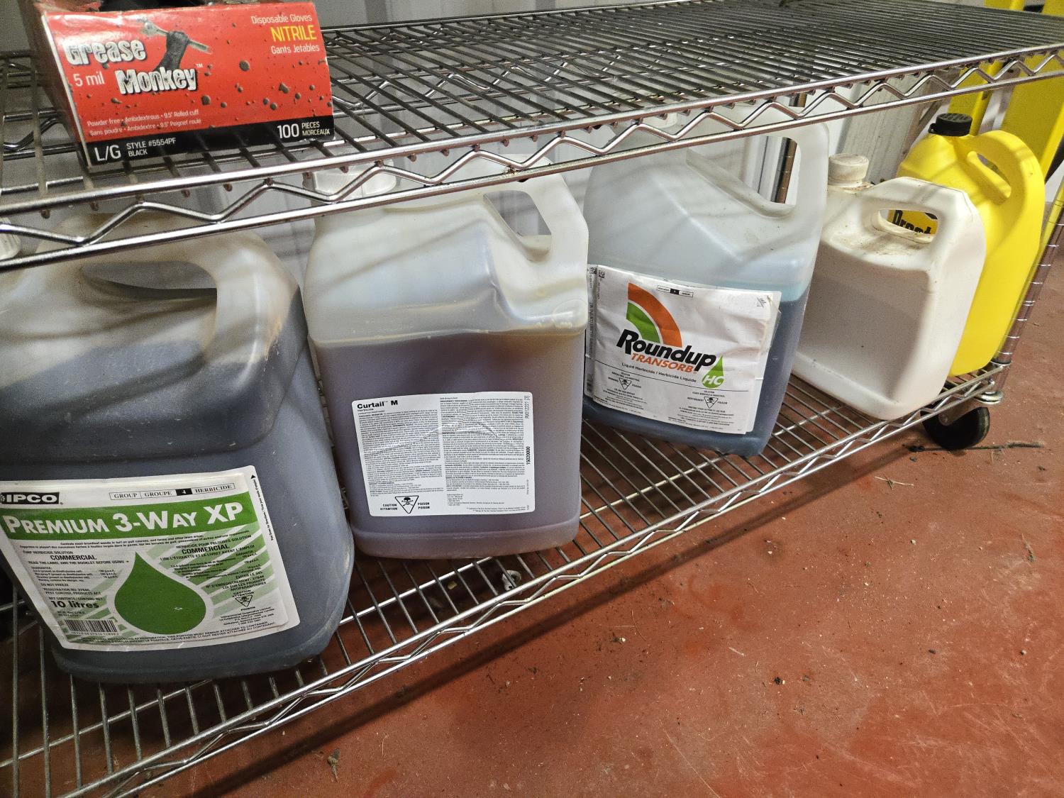 Part jug of Round up, part jug on Curtail M, Shop oils and fluids, sealants, 2 stroke oil, miscellaneous spray cans, mis items